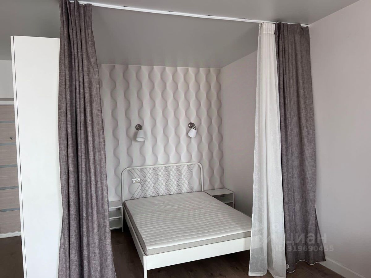 ЖК ''Западное Кунцево''. Сдается уютная, стильная студия в Ромашково. Улица Никольская дом2к2. Дом монолитно -кирпичный 2016 года. В комнате есть 2-х спальная кровать и диван, но при этом все очень достойно и симпатично, не заставлена мебелью. Есть гардеробная комната, в нише оборудована зона отдыха,встроенный кухонный гарнитур со всей бытовой техникой. Сдается только на длительный срок.