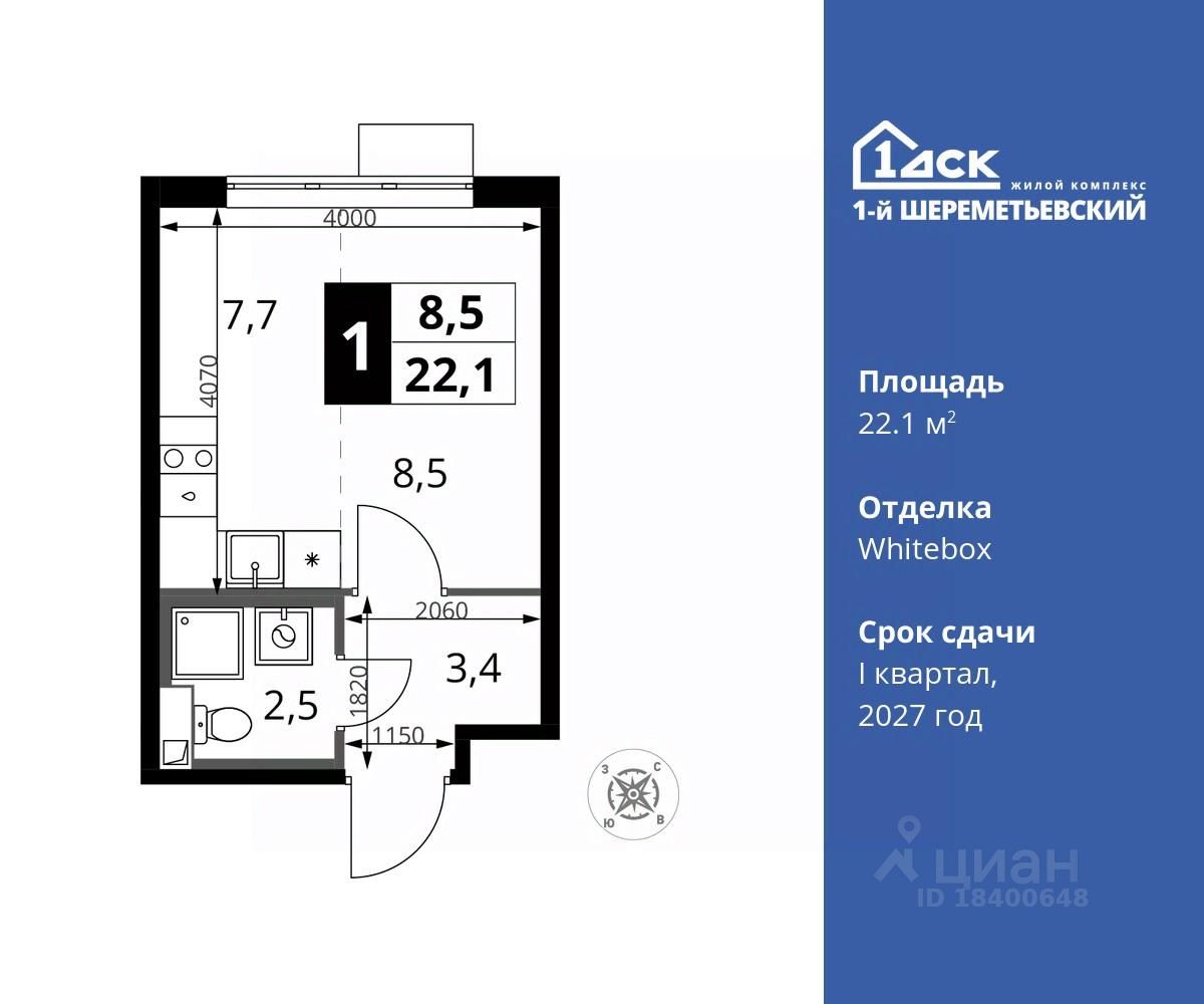 Общая площадь22,1 м2
