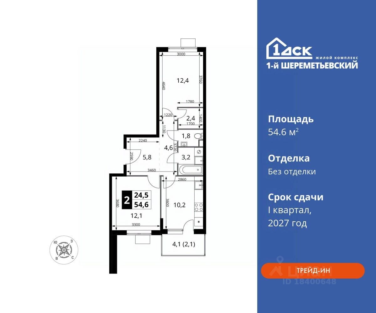 Общая площадь54,6 м2