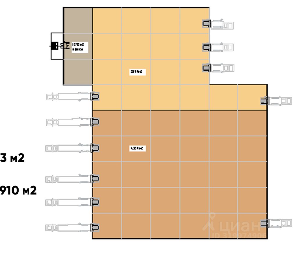 Высота складирования - 10 м. Сетка колон 12х24 м. Бетонный пол с антипылевым покрытием и нагрузкой: 7т/м2. 9 основных постов для грузового автотранспорта, 2 поста для малотоннажного транспорта.