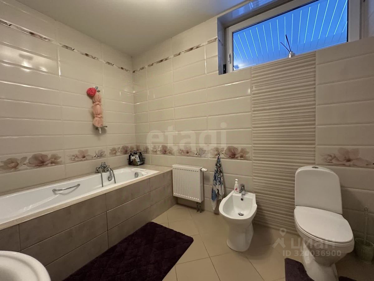 О доме: Три жилых этажа, 5 спален, примыкающая к дому закрытая терраса. За домом 3 сотки земли с плодовыми деревьями, зоной барбекю и качелями, имеется деревянная кладовая. Возле дома навес на несколько машин. Рядом с входом располагается придомовой цветущий сад.