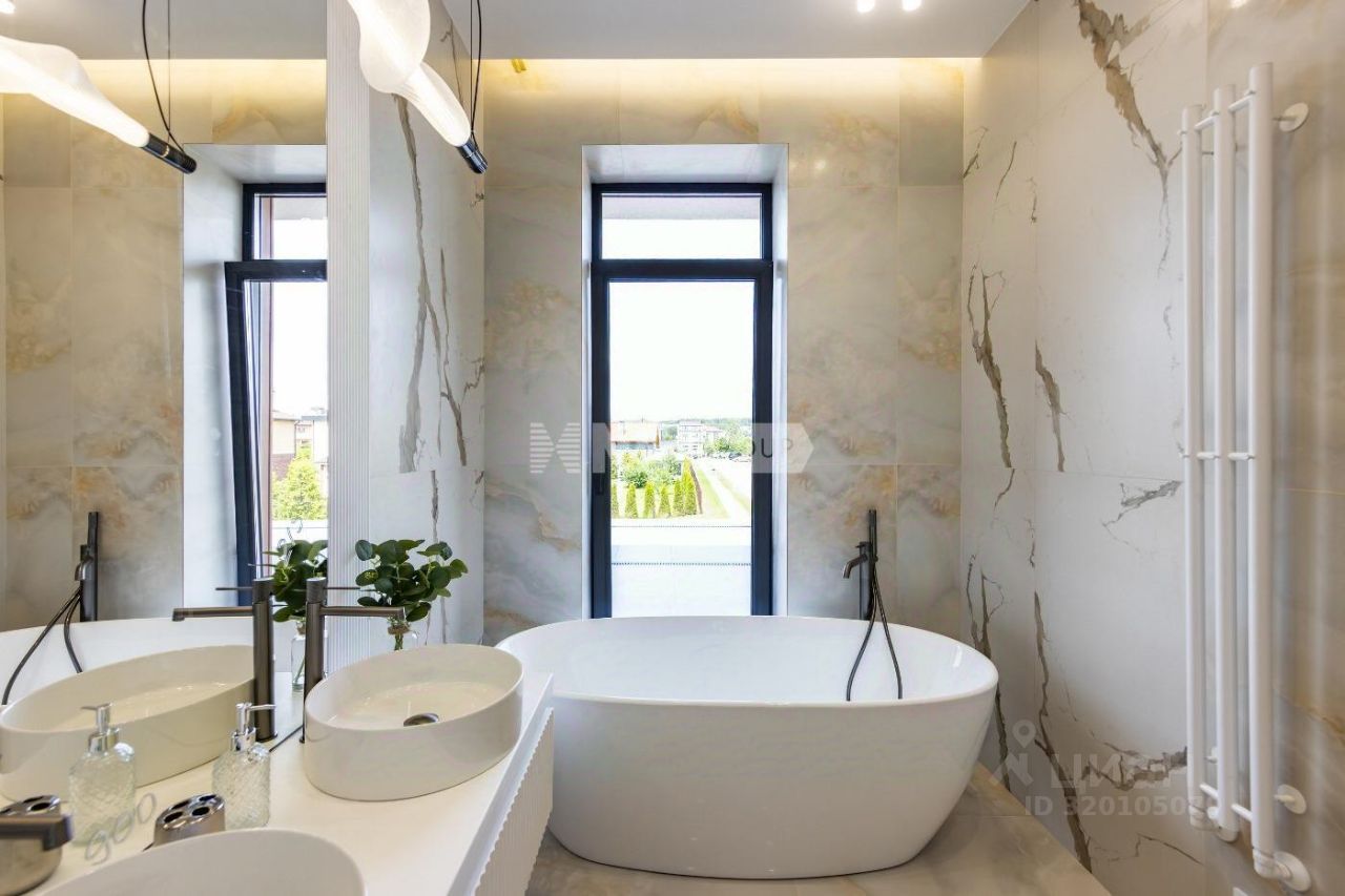 Современный уютный дом для комфортной жизни на Новой Риге. Полностью жилой поселок с охраной и общественными зонами. Характеристики - кирпичный дом с монолитными перекрытиями и фундаментом - современный экстерьер с плоской кровлей - плоская кровля выполнена из мембраны - окна Salamander - роскошный навес на два автомобиля - комбинированный фасад - зарядка для электромобиля - удобная, проработанная планировка - дизайнерский ремонт - высококачественные современные отделочные материалы - сантехника и электрика выполнена качественными импортными материалами
