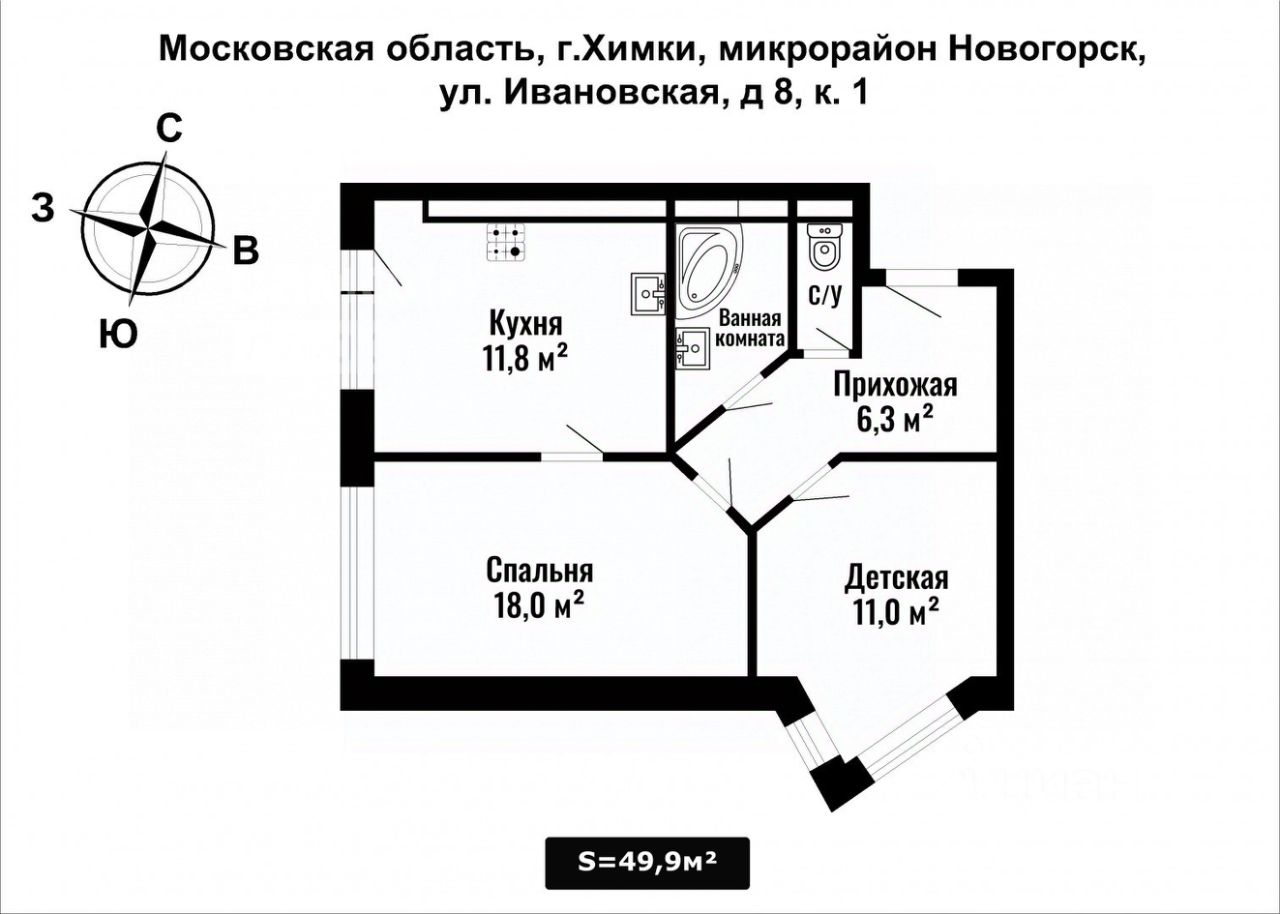Общая площадь49,9 м2