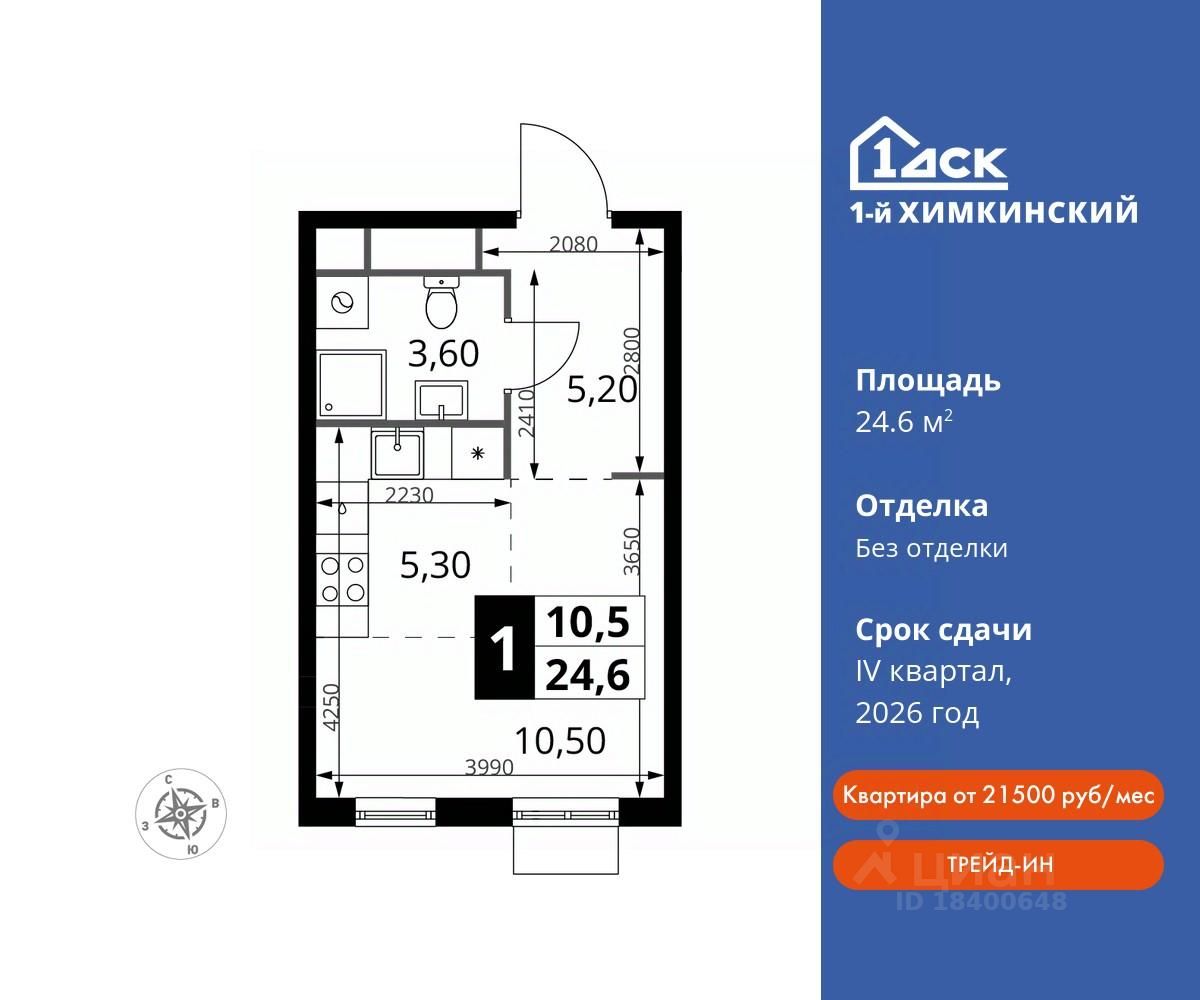 Семейная ипотека без наценки со скидками до 21% до конца августа! Прямая продажа от застройщика! Жилой Комплекс класса Комфорт. Продаётся студия номер 115 общей площадью 24.6 кв.м на 17-м этаже 17 этажного дома. Без отделки.