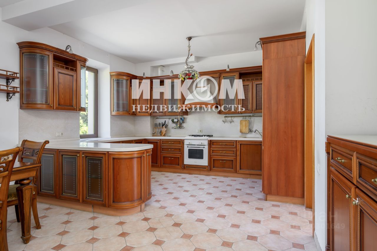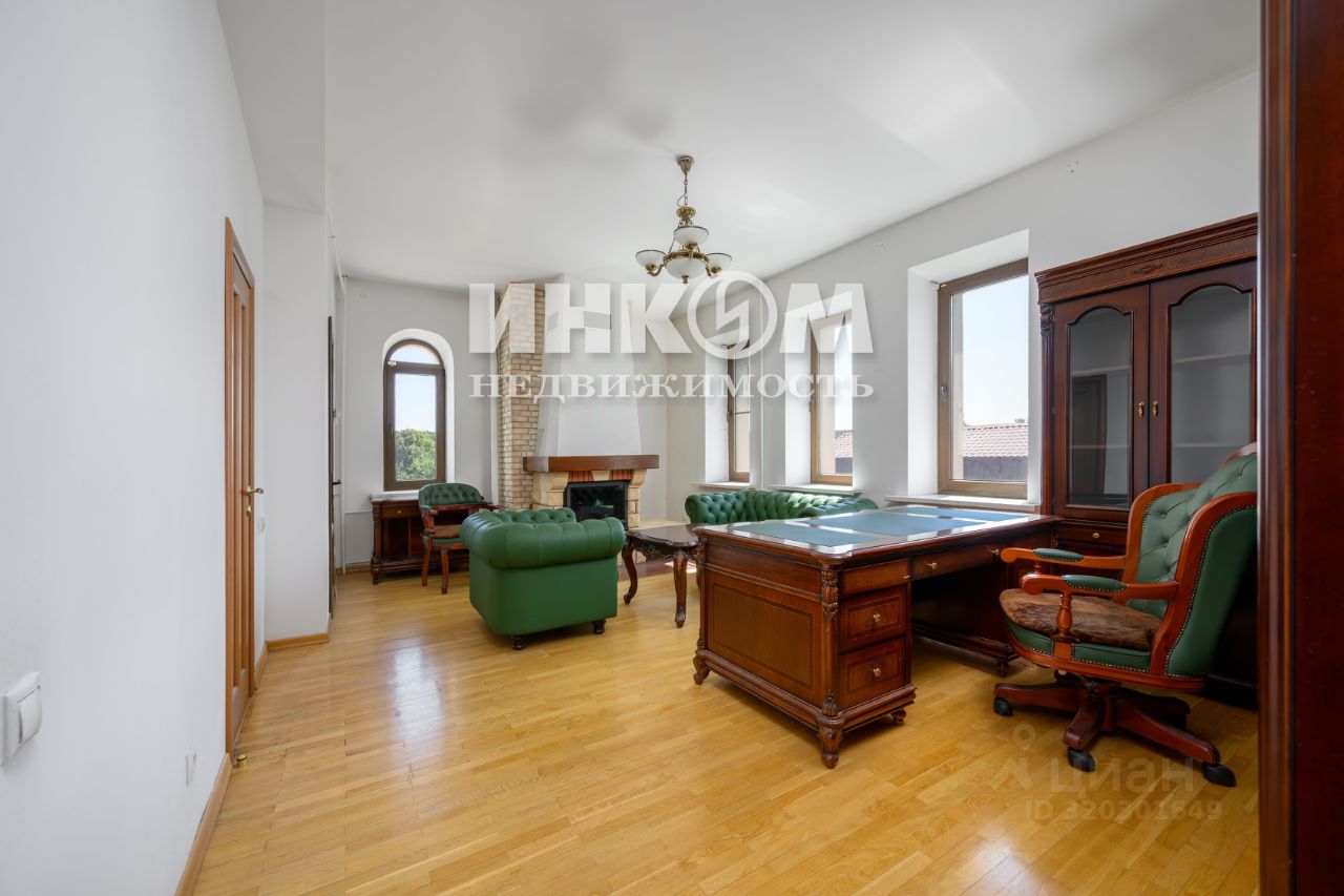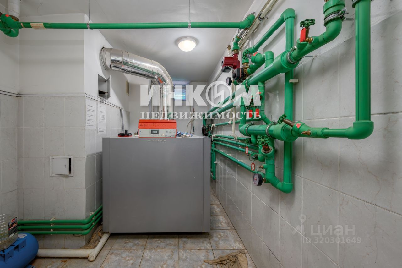 На первом этаже: располагается гостиная с камином, кухня и столовая зона, гостевая, 2 санузла. Хозяйственный блок с котельной и постирочная на цокольном этаже. Выход из гостиной на террасу в благоустроенный двор.