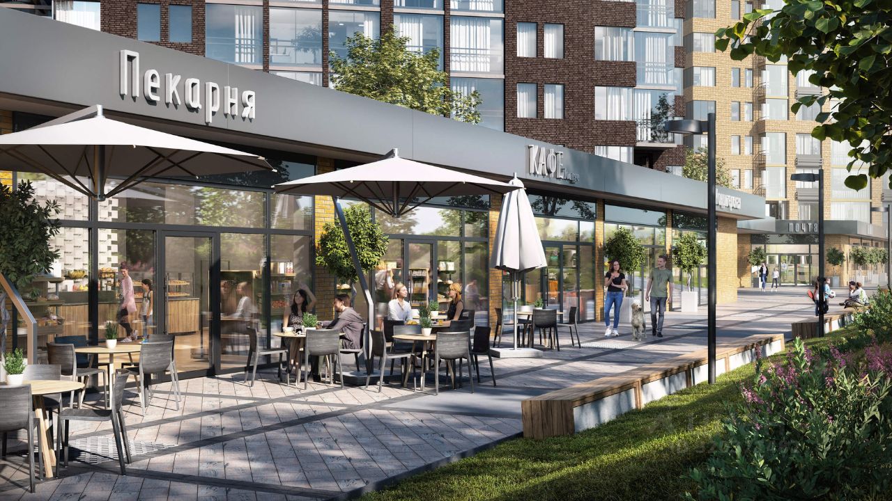 Коммерческая инфраструктура: рядом с жилым комплексом расположены продуктовые супермаркеты, салоны красоты и кафе.
