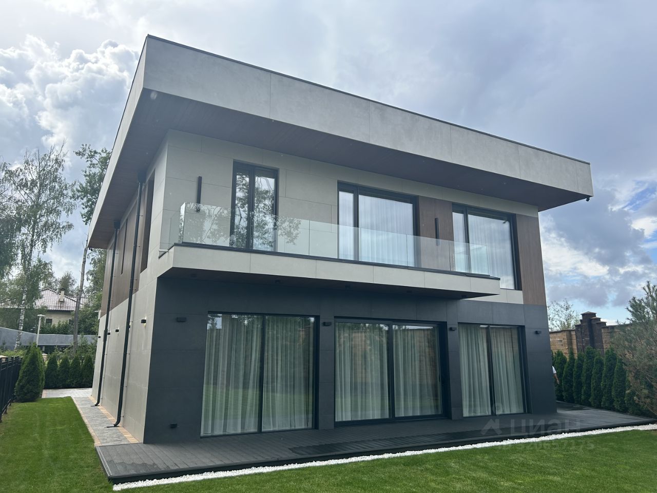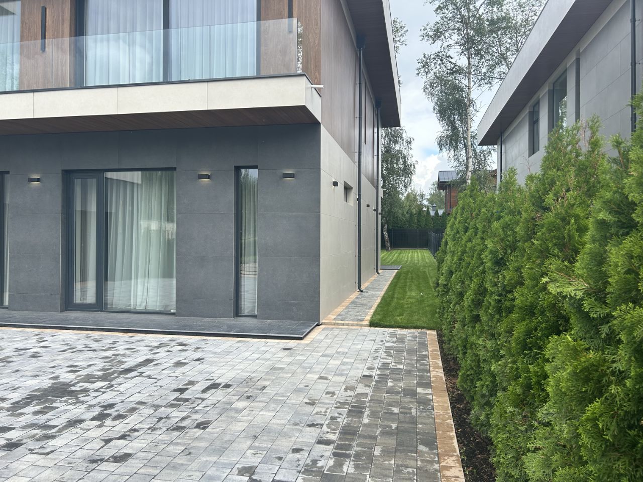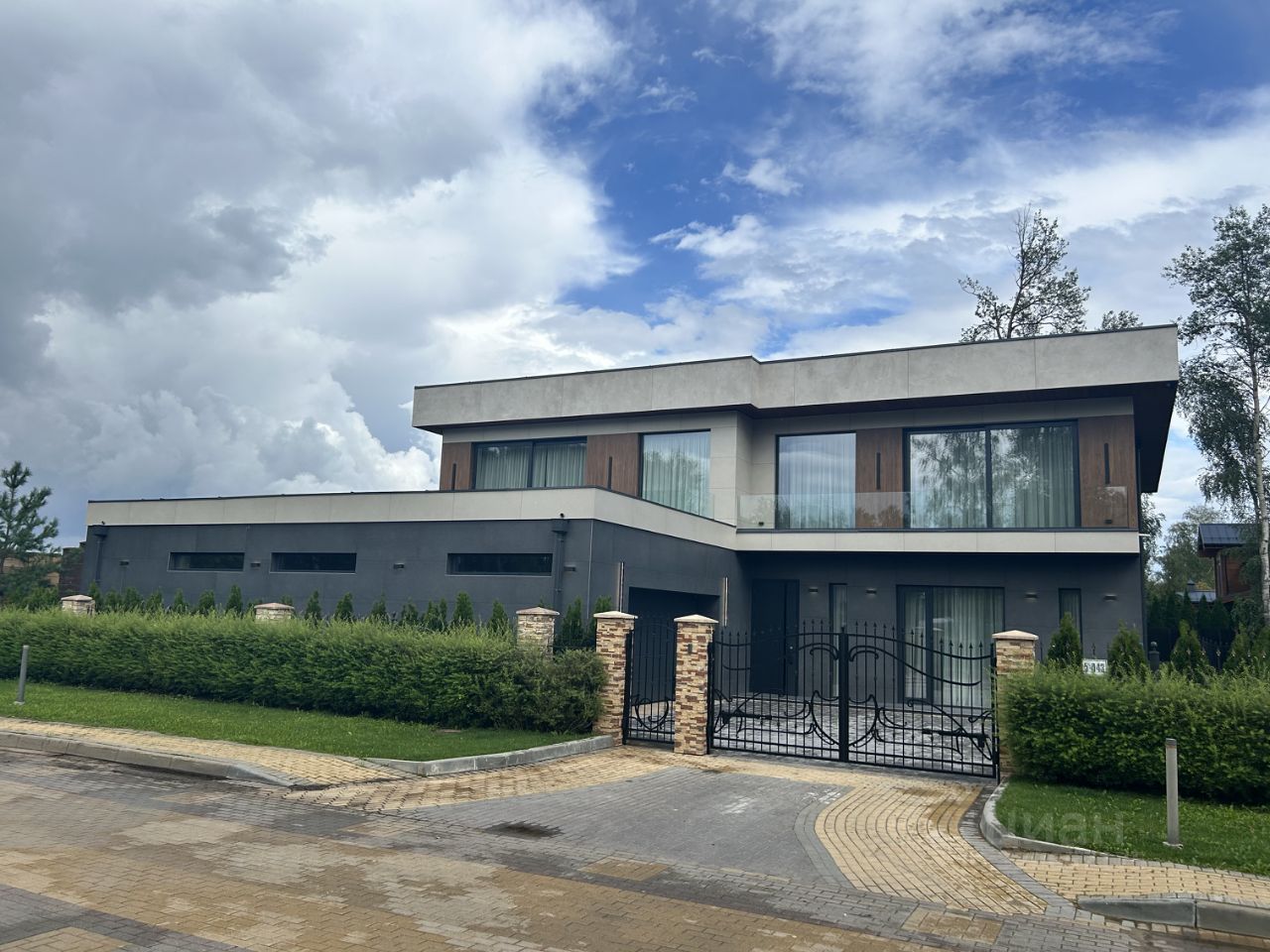 КП МОНТЕВИЛЬ. Новый кирпичный Hi-Tech общей площадью 507 кв. м в элитном, строго охраняемом, полностью застроенном коттеджном поселке в окружении леса. Дом расположен в тихой, приватной части посёлка. Материал стен - кирпич, фасад вентилируемый, выполнен из высококачественной лиственницы и керамогранита, прекрасно сохраняет тепло внутри дома и не требует обслуживания. В доме выполнена премиальная отделка в современном стиле, качественное панорамное остекление ''от пола до потолка'' и высокие потолки визуально увеличивают пространство, встроенные теплые полы, установлена премиальная встроенная техника и сантехника, дом укомплектован стильной мебелью и предметами декора. Планировка дома: 1 этаж: гардеробная, большая кухня-столовая-гостиная, уютная спальня, котельная, постирочная, гараж для двух автомобилей, два санузла, СПА-зона с сауной, душевой и выходом на участок, квартира персонала. 2 этаж: большая мастер спальня с санузлом и гардеробной, 3 спальни со своими санузлами и гардеробными, балкон. В отделке использовались качественные известные бренды Италии и Испании. На ухоженном участке 10 соток выполнен ландшафтный дизайн, установлено видеонаблюдение. На эксплуатируемой кровле можно сделать зону для отдыха в тёплое время года. Все центральные коммуникации. Коттеджный поселок Монтевиль - это элитный поселок, находящийся в окружении живописного леса. Территория поселка благоустроена и круглосуточно охраняется. На берегах реки Беляны и рядом с прудами расположены прогулочные зоны с беседками. Поселок строго охраняется, круглосуточное патрулирование, общее видеонаблюдение. 3 КПП. Жители могут пользоваться клубными привилегиями ''Villagio'' и могут посещать все объекты инфраструктуры соседних проектов. За несколько минут на машине получится доехать до детского клуба ''Робин Гуд'' в соседнем КП ''Гринфилд'', супермаркетов ''Азбука вкуса'' и ''Перекресток''. Рядом множество детских садов и школ, торгово-развлекательных комплексов, есть конно - спортивный комплекс, фитнес центр с катком, много хороших кафе и ресторанов. Инфраструктура Павловской Слободы и Звенигорода. Удобный выезд на Новорижское шоссе. С уважением Александр.