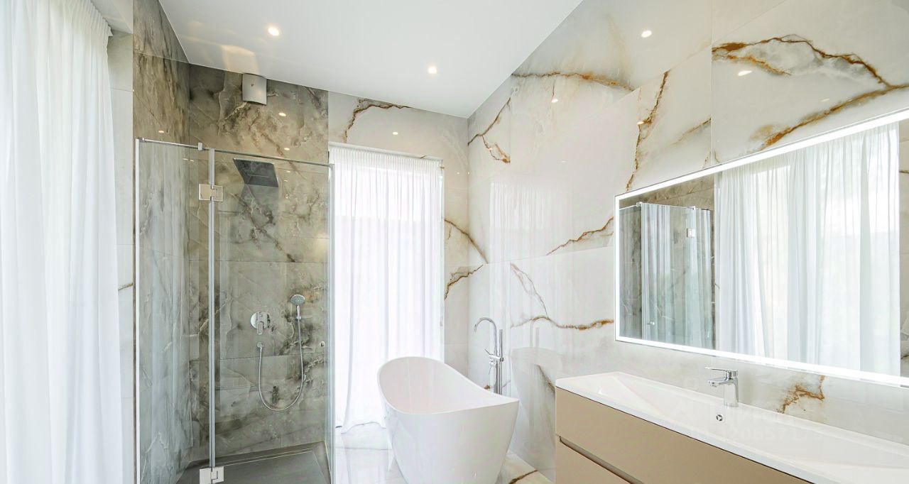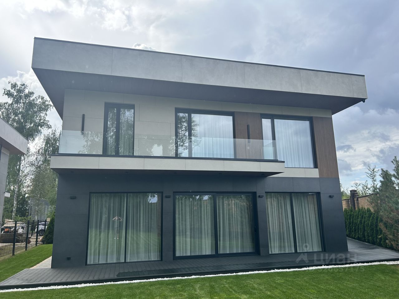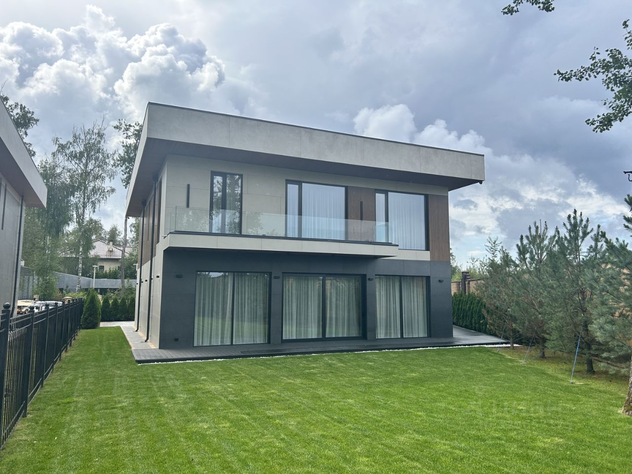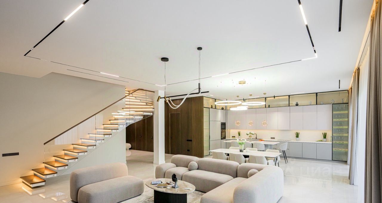 КП МОНТЕВИЛЬ. Новый кирпичный Hi-Tech общей площадью 507 кв. м в элитном, строго охраняемом, полностью застроенном коттеджном поселке в окружении леса. Дом расположен в тихой, приватной части посёлка. Материал стен - кирпич, фасад вентилируемый, выполнен из высококачественной лиственницы и керамогранита, прекрасно сохраняет тепло внутри дома и не требует обслуживания. В доме выполнена премиальная отделка в современном стиле, качественное панорамное остекление ''от пола до потолка'' и высокие потолки визуально увеличивают пространство, встроенные теплые полы, установлена премиальная встроенная техника и сантехника, дом укомплектован стильной мебелью и предметами декора.