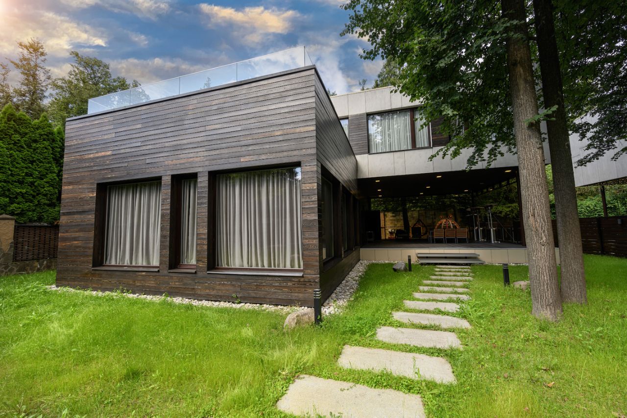 Предлагаем Вашему вниманию уникальный дом построенный по фахверковой технологии с использованием самых передовых технологий, материалов и коммуникаций. Дом расположен в закрытом и строго охраняемом коттеджном посёлке Нагорье-12, который расположен в лесопарковой зоне всего в 4 км от МКАД на пересечении улицы Заречной и Куркинского шоссе . Уникальность дома в его архитектуре и системе умный дом. Основу внутренней отделки составляют: арт-бетон и винтажный дуб. В доме создана автономная система микроклимата. Дом полностью готов к проживанию, для оснащения интерьера использована очень дорогая мебель и техника.