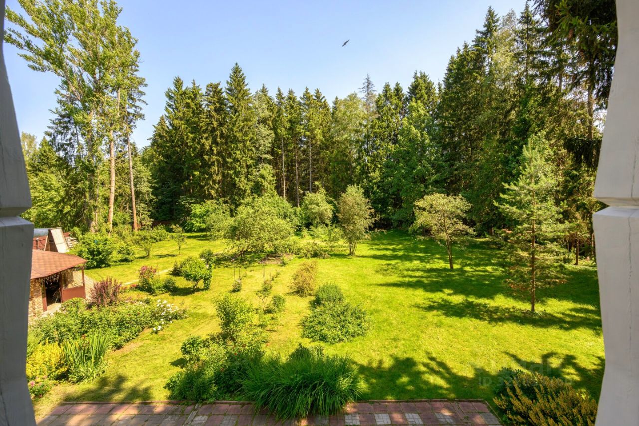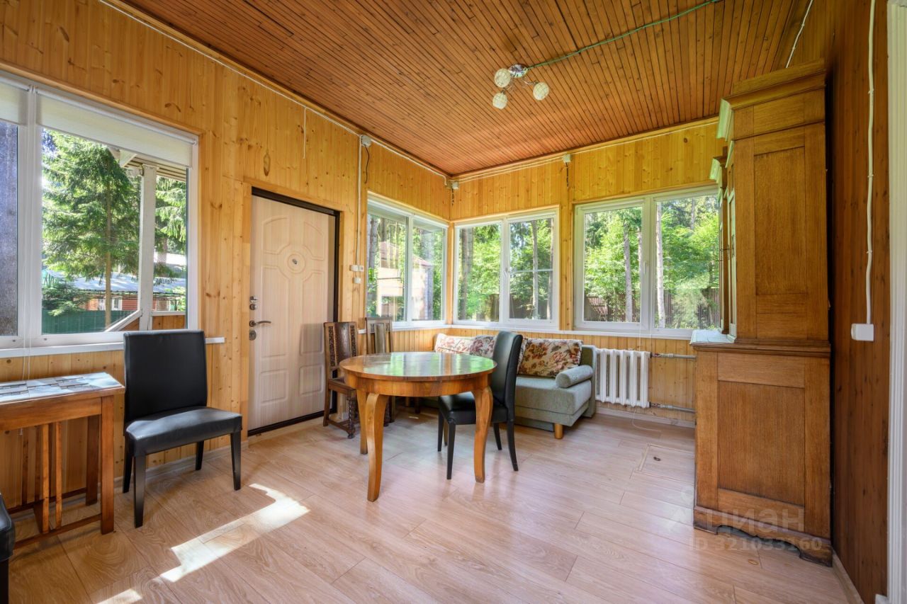 А так же 2-х этажный, очень крепкий дом из бруса 1958 года постройки площадью 130 кв. м, генеральская дача прежней эпохи. На первом этаже: коридор, кухня, гостиная с русской печью, две комнаты, уютная веранда с широким окнами на три стороны и вторым выходом в сад, с/у с душевой, котельная. На 2-м этаже этаже две спальни, одна из них с балконом и шикарным видом на просторный живописный участок, кабинет-библиотека, с/у с душем.