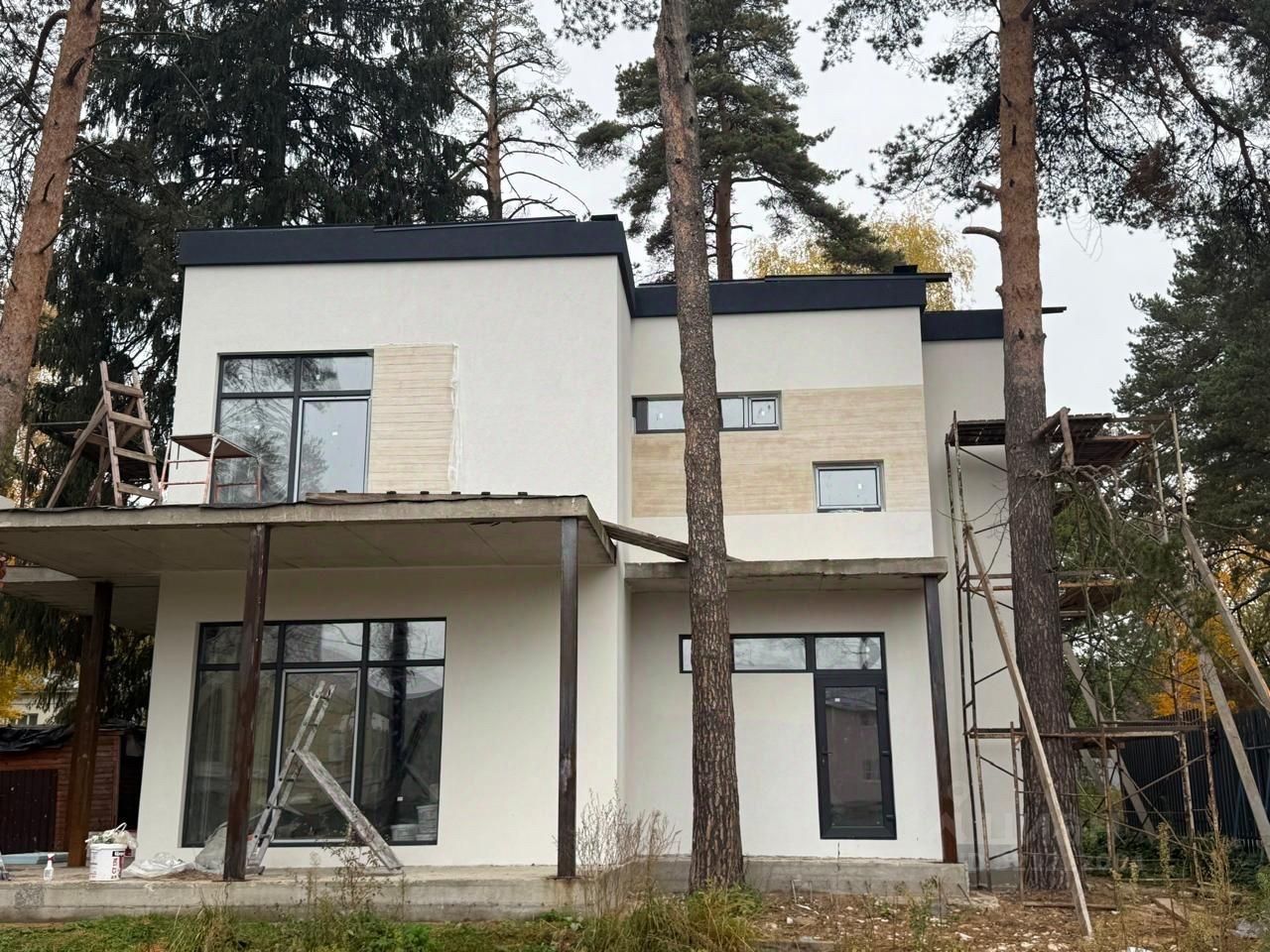 Предлагаем купить коттедж в стародачном поселке Салтыковка. Кадастровый номер участка: 50:15:0030822:402. В экологически чистом месте рядом с лесным массивом. В настоящее время производятся строительные работы по возведению данного коттеджа .Уникальный проект разработан с учетом произрастания на участке вековых сосен. Деревья практически растут в доме. Общая площадь коттеджа 182,52. Жилая - 76,81 1этаж: прихожая, холл, гостиная-столовая, кухня, котельная, гостевая, с/у, гардеробная. 2этаж: холл, 3 спальни, 2 с/у. На первом этаже две террасы площадью 37,39. По всему дому панорамные окна. Весь день в доме естественное освещение, много дневного солнечного света. Дом расположен так, что окна соседних домов не смотрят друг на друга.