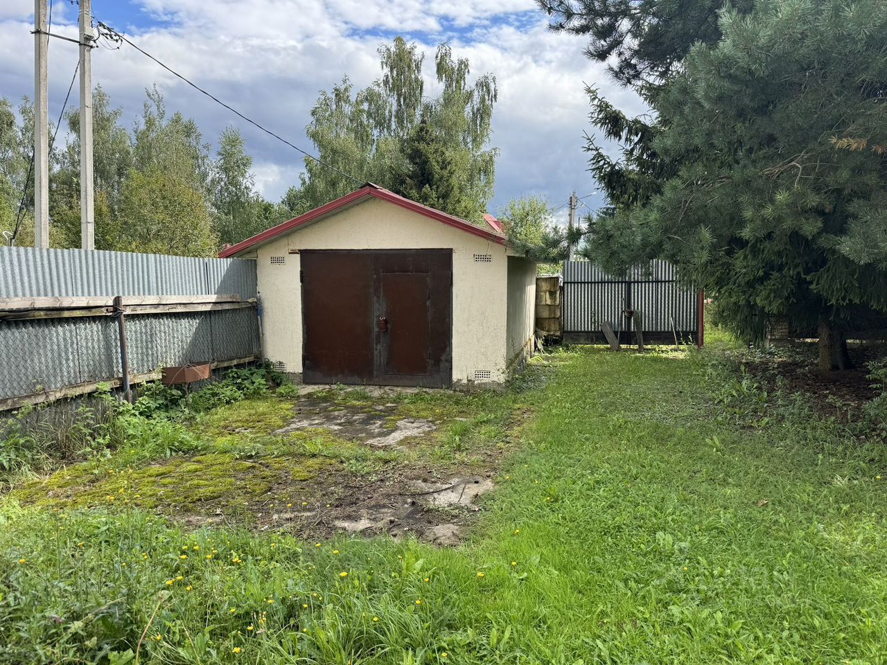 Ha тeрритоpии зeмeльного участка гараж, небольшой садовый домик и баня