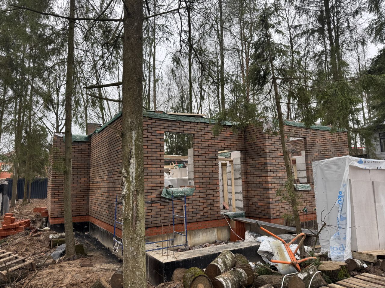 В комплектацию входит забор по периметру, ворота и калитка, утепленная отмостка.