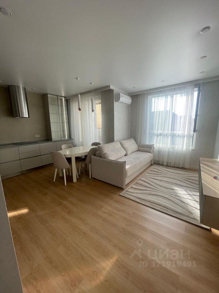 В квартире выполнен дизайнерский ремонт, всё абсолютно новое, раннее не сдавалась и никто не проживал,что создает современную и комфортную атмосферу. Обставлена мебелью в комнате и на кухне, поэтому вам не придется заботиться о дополнительных покупках. Полностью оборудованная кухня: холодильник, посудомоечная,плита, духовка,посудомоечная машина и два кондиционера. В ванной комнате установлена ванна, санузел раздельный.