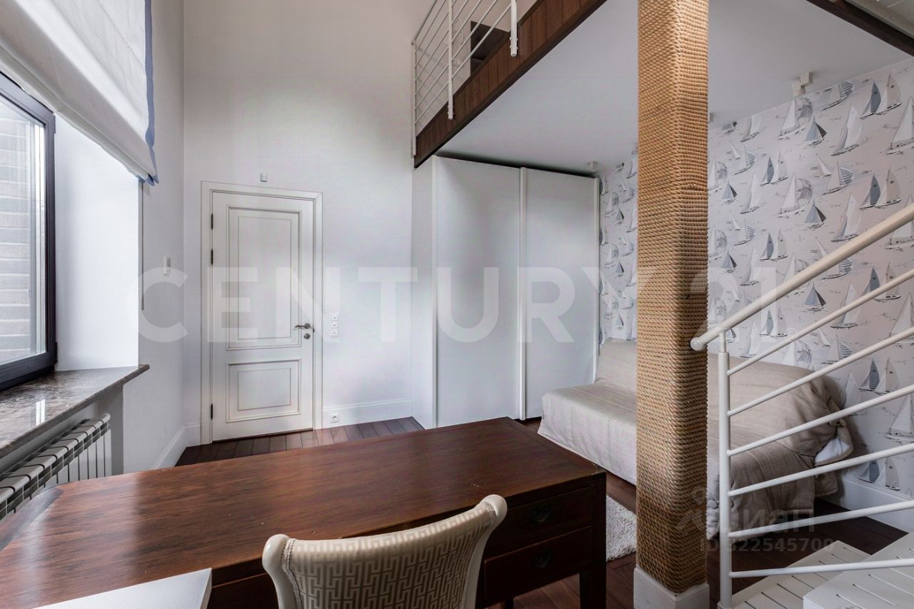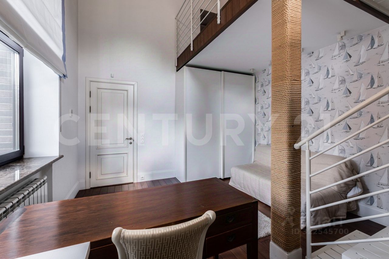 На втором этаже расположены: спальная комната 19,4 м², с выходом на просторную террасу 17,2 м², две двухуровневых детских комнаты 17,1 м² и 15,7 м², гардеробная, два санузла, а также рабочий кабинет 18,6 м².