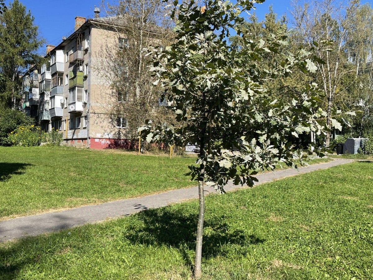 Балкон квартиры открывает вид на зеленый двор, создавая атмосферу уюта и спокойствия — идеальное место для утренней чашки кофе или вечернего отдыха.