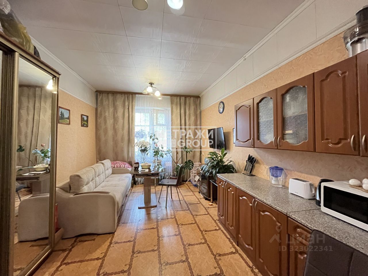 В комнате при продаже остается новому собственнику: кухонный гарнитур и большой шкаф.