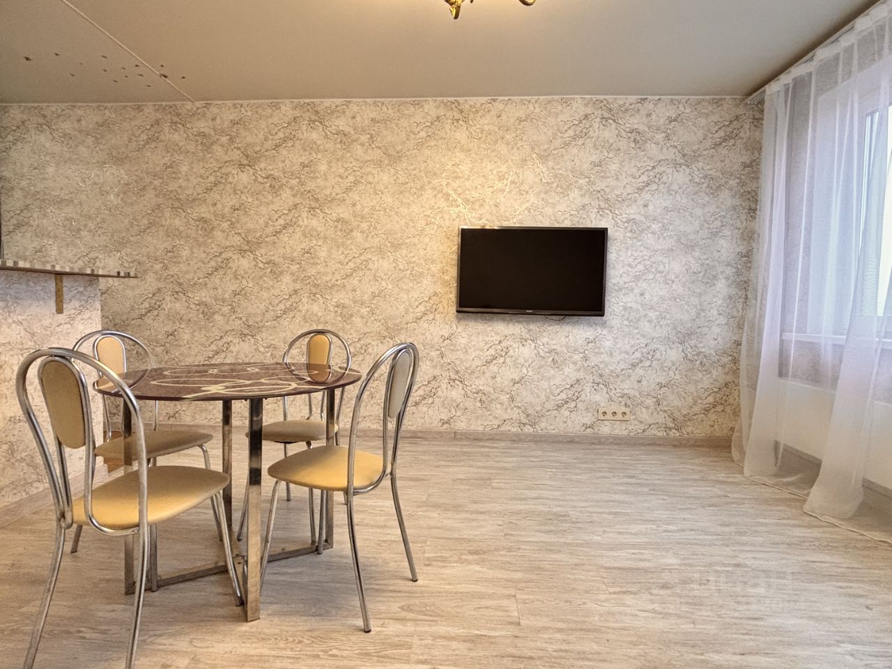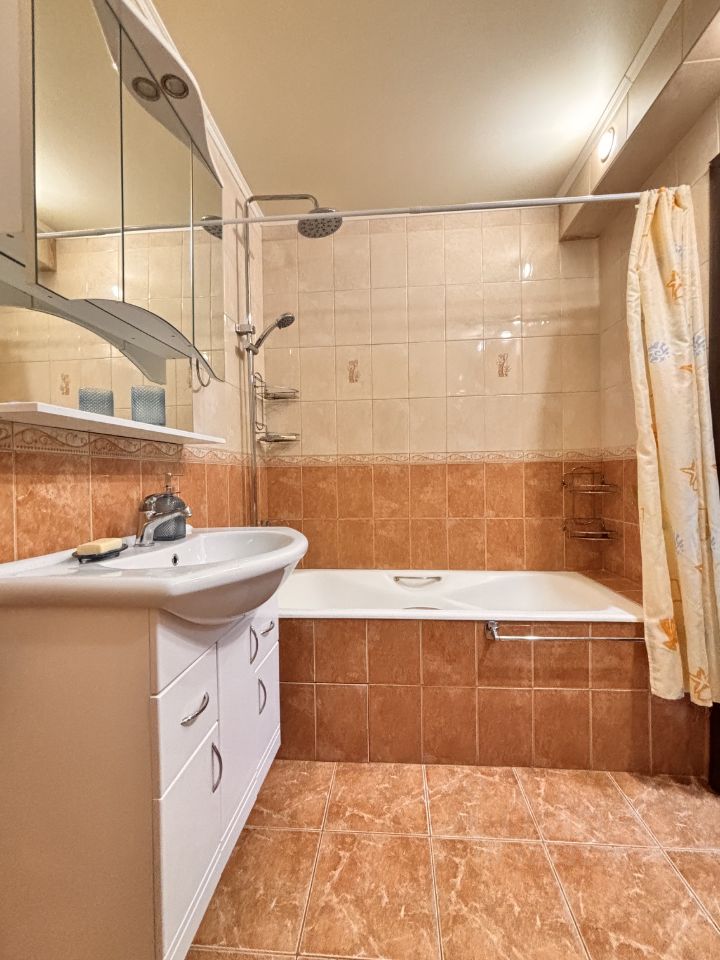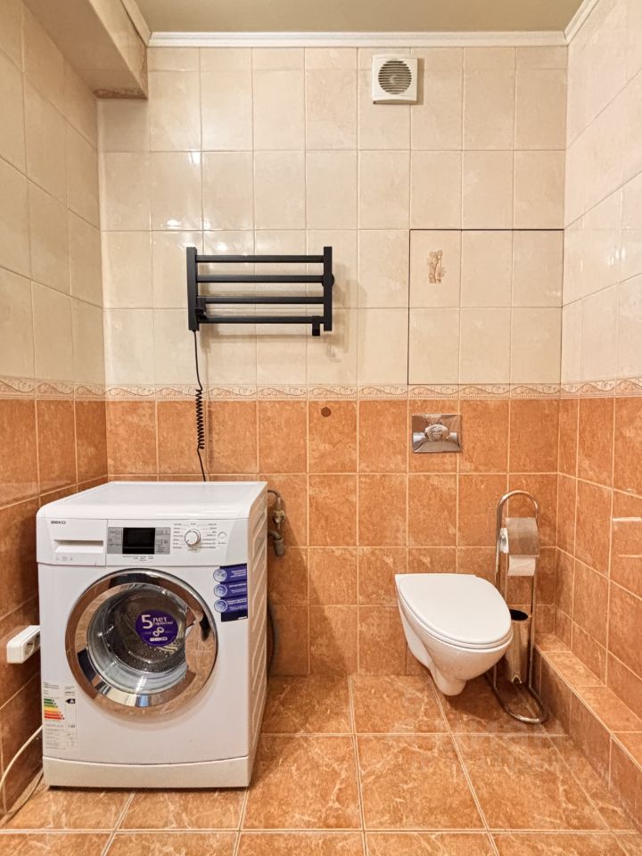 Совмещенный С/У, оборудован качественной сантехникой, установлены приборы учета на горячее и холодное водоснабжение. В гостиной раскладной диван, и телевизор. Также установлен кондиционер.