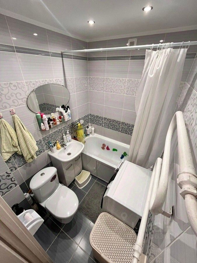 Санузел оформлен в современном кафеле, а индивидуальный прибор нагрева воды обеспечит Вам комфорт в любое время года.