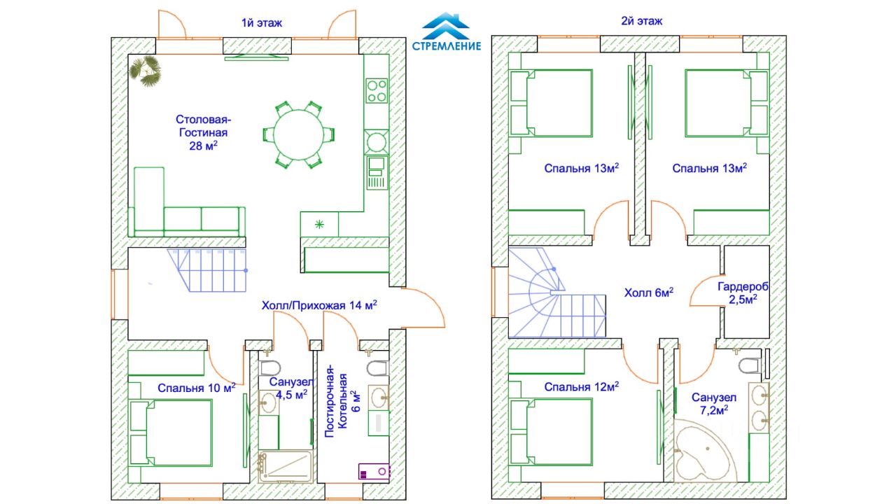 2й этаж: - 3 Спальных - Санузел - Гардеробная