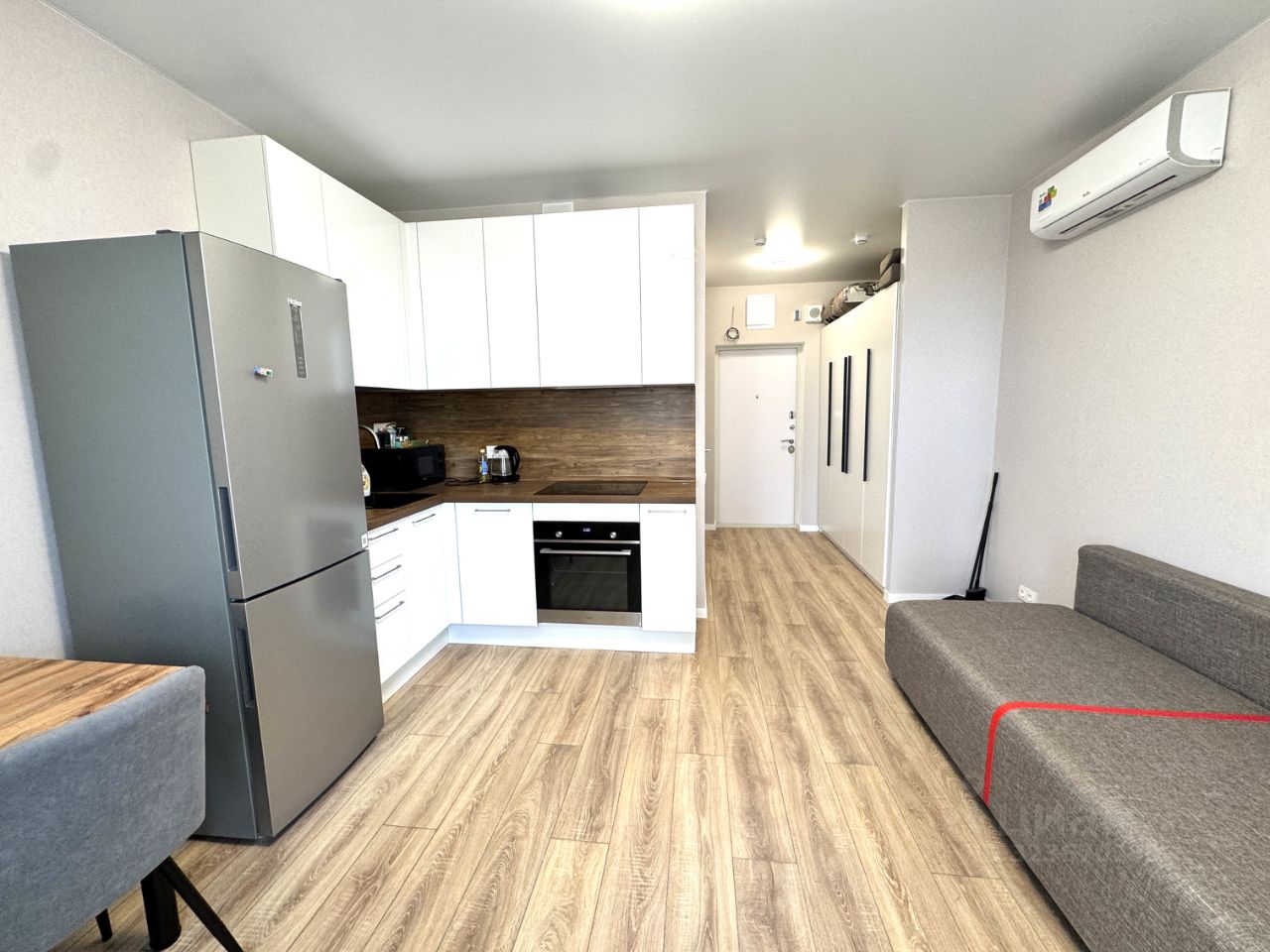 Светлая и аккуратная квартира-студия площадью 25 м². Вся необходимая мебель и техника уже есть: кондиционер, посудомоечная машина, СВЧ-печь. Заезжай и живи с комфортом!