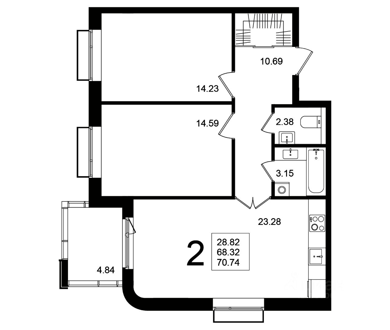 Продаётся 2-комнатная квартира в строящемся доме (Корпус 7), срок сдачи: 4-кв. 2025, общей площадью 70.74 кв.м., на 5 этаже.