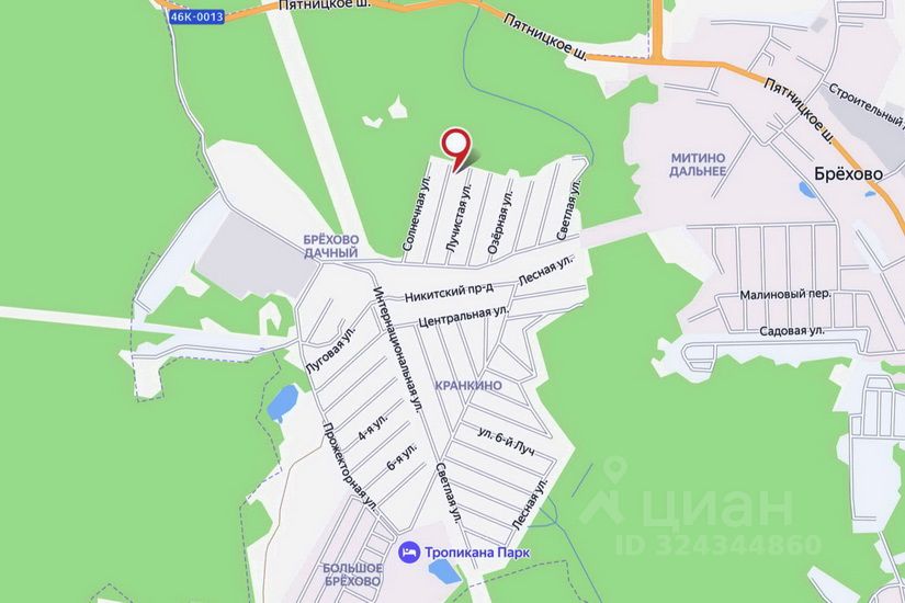 В 2-х километрах от участка находится загородный комплекс Тропикана Парк, который предоставляет большой комплекс услуг: гостиница, ресторан, бар, караоке, бассейн, баня и сауна, боулинг, бильярд, площадки для барбекю, спортивные площадки, детский городок, озеро с пляжем, рыбалка.