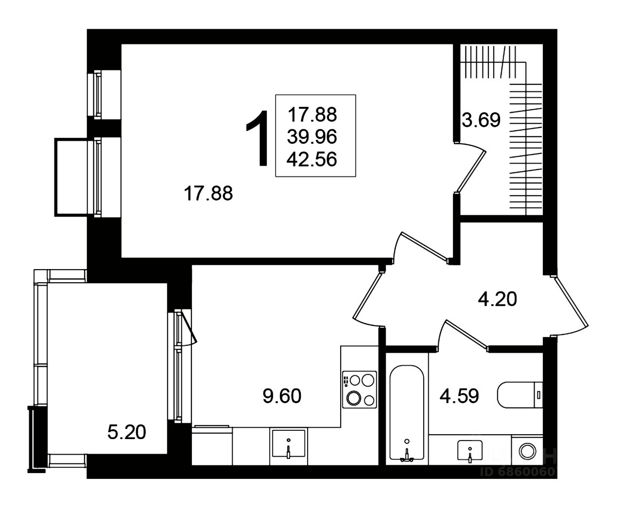 Продаётся 1-комнатная квартира в строящемся доме (Корпус 7), срок сдачи: 1-кв. 2026, общей площадью 42.56 кв.м., на 5 этаже.