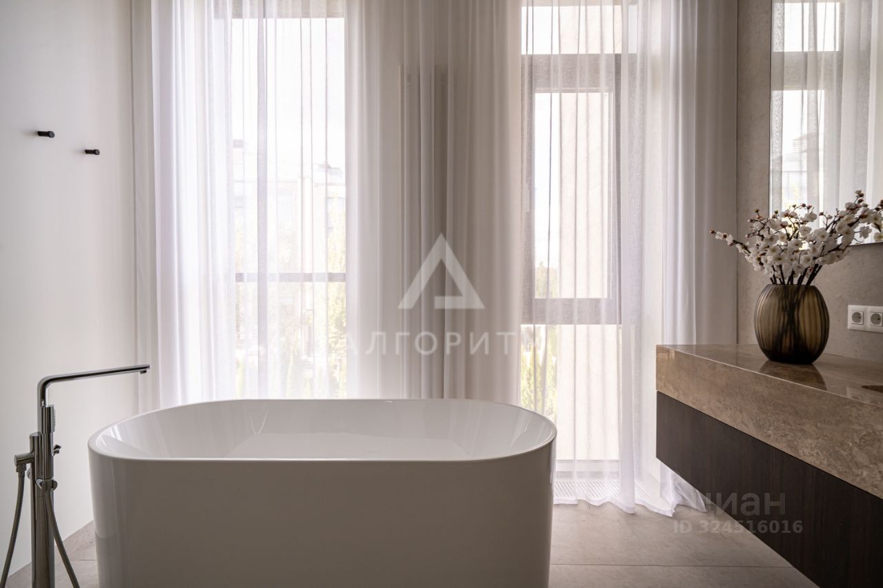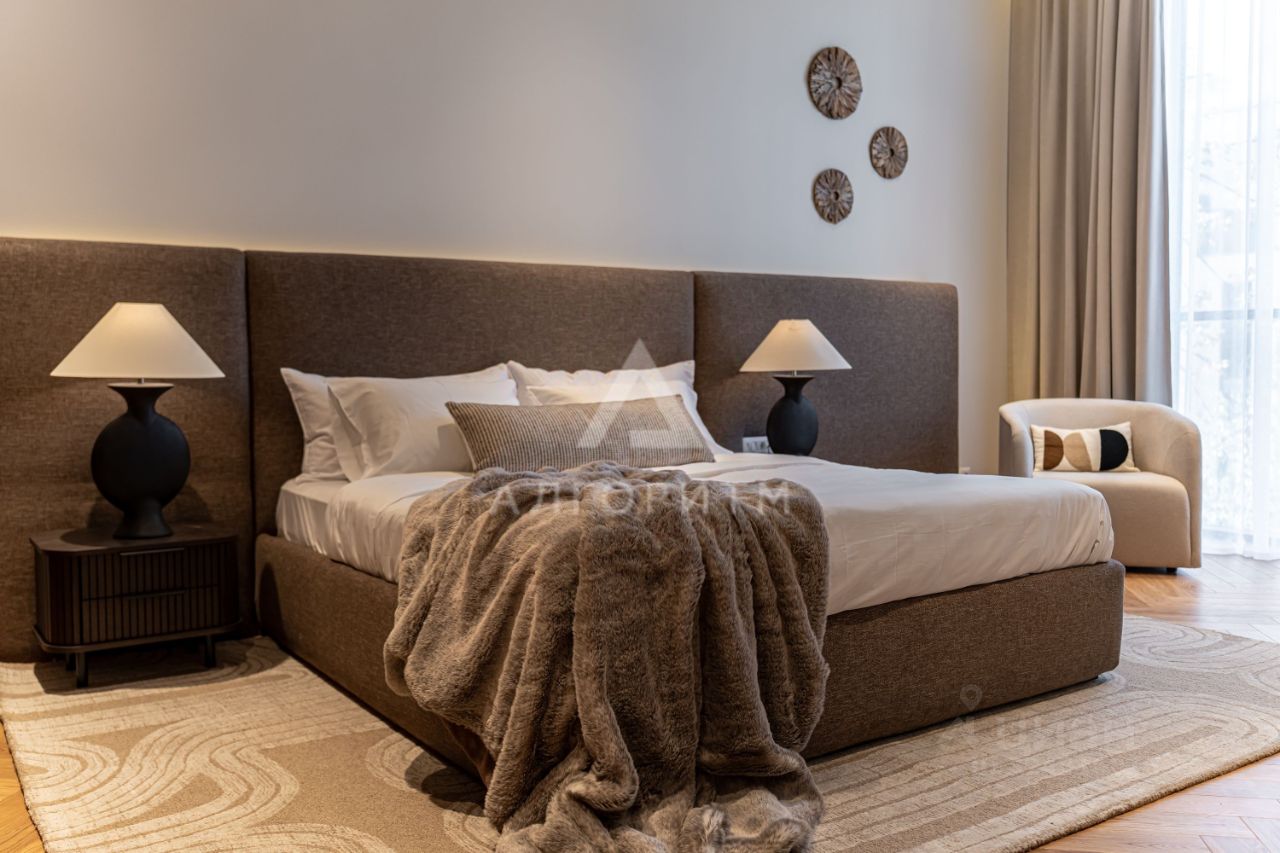 высокие потолки 3,5 метра, панорамные окна в пол, в отделке использованы исключительно натуральные экологичные материалы: натуральный камень - травертин и натуральное дерево - дуб, премиальная бытовая техника ASKO, Elica, Liebherr, Omoikiri канальное кондиционирование во всех комнатах, немецкие смесители Grohe, двери скрытого монтажа Union высотой 2.