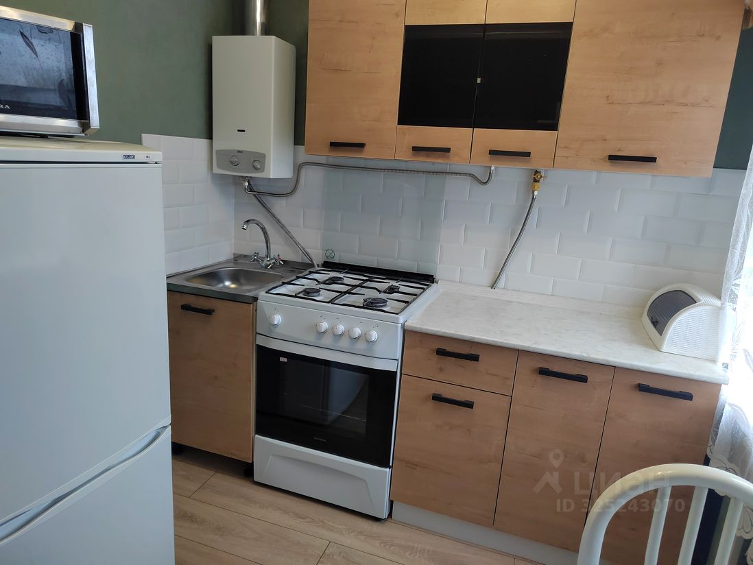 Квартира без ремонта, но полностью меблирована: есть всё необходимое для комфортной жизни. В комнате и на кухне установлена мебель, а также имеется холодильник, стиральная машина и телевизор. Санузел совмещённый, с ванной. Окна выходят на улицу, что обеспечивает хорошее естественное освещение.