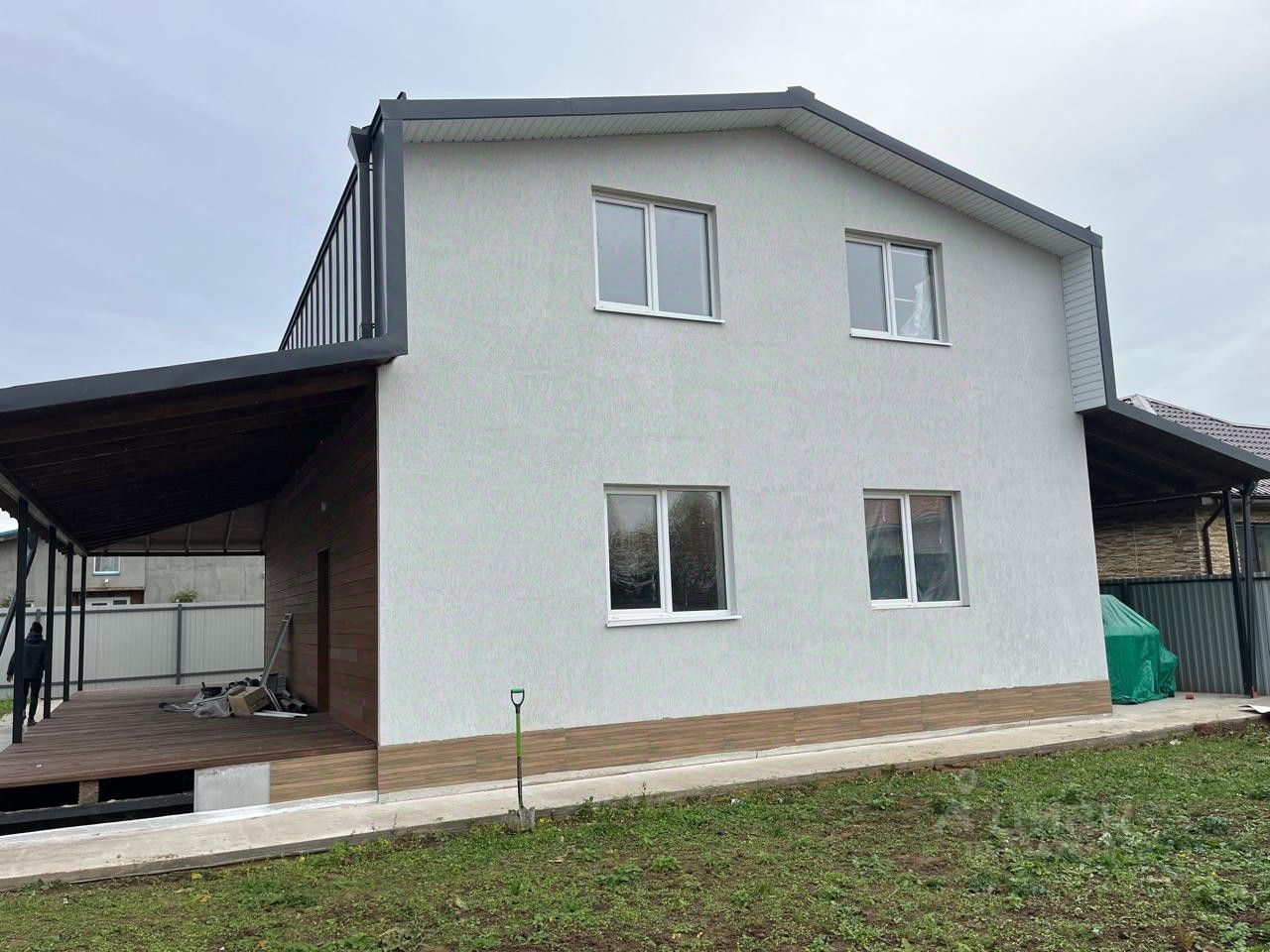 Продается просторный, капитальный дом для круглогодичного проживания на участке 8 соток, общей площадью 171,3 кв. м. под чистовую отделку. Участок находится в закрытом, обжитом КП Новожилино. С левой стороны к дому - навес на 2 машины площадью 45 м2, с правой стороны дома веранда площадью 45 м2 с возможностью дальнейшего остекления. Конструкция дома ( фундамент монолитный ЖБ свайно-ростверковый, накрытый монолитной ЖБ плитой, стены газосиликатные блоки 300мм, с наружи утепление 100мм, вентилируемый и теплый фасад, перекрытие сборные ЖБ плиты на монолитном поясе, кровля фальцевая (металл с покрытием 0,5мм RAL 7024 , двойной фалец с организованным стоком воды), утепление 200мм, с продухами и вентилируемым коньком). . Участок ровный, правильной формы, огорожен забором.