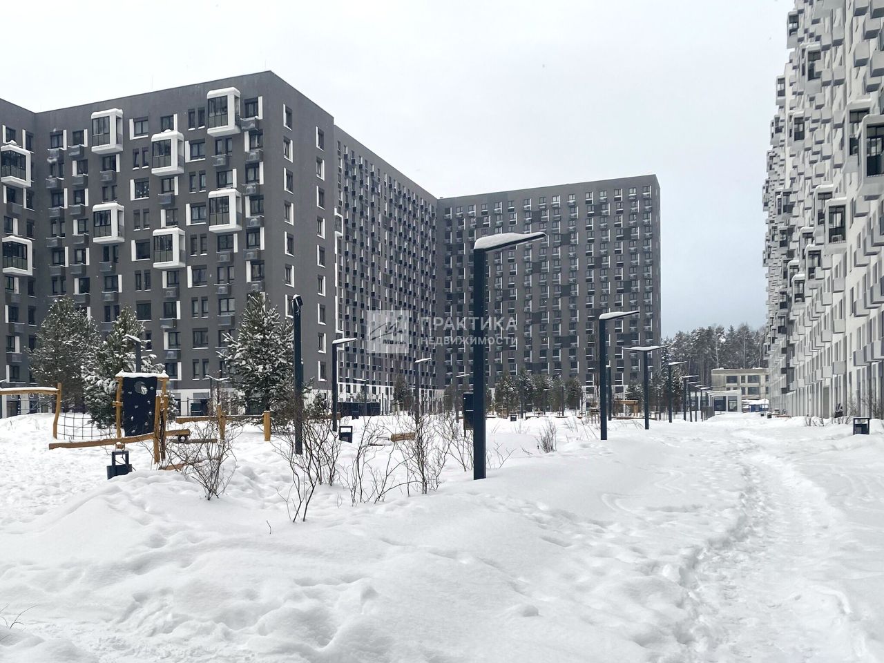 Квартира студия в новом Мытищинском районе - ЖК Мытищи Парк. Дом 2025 года постройки, есть колясочная, два лифта, закрытая территория, наземная парковка.