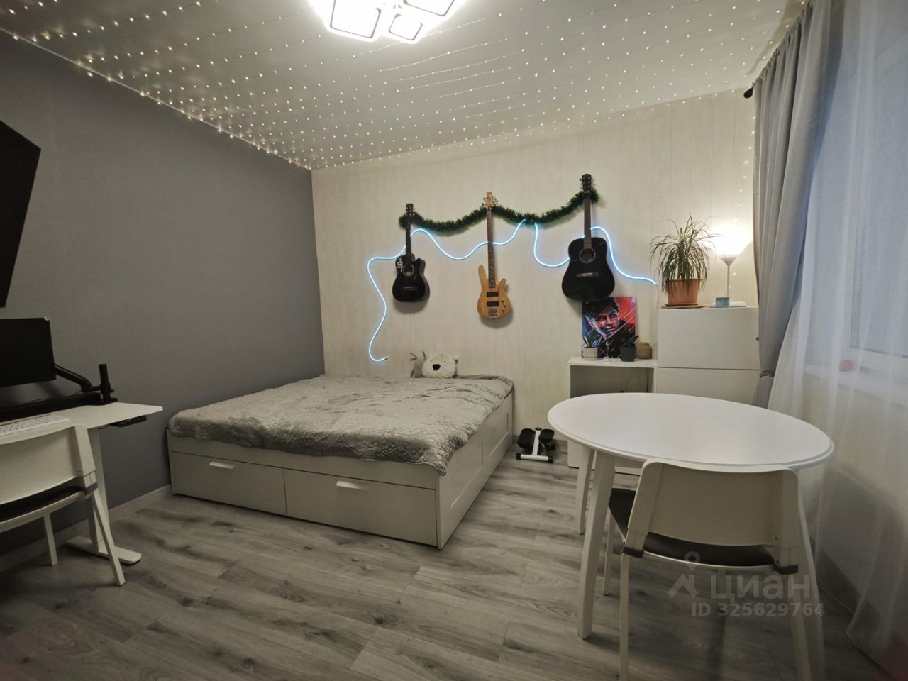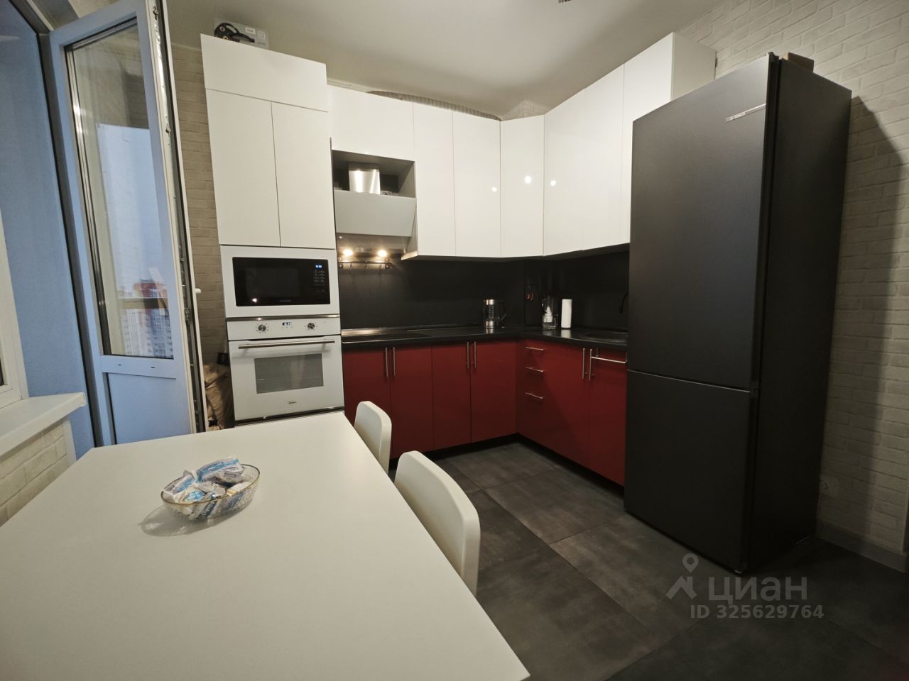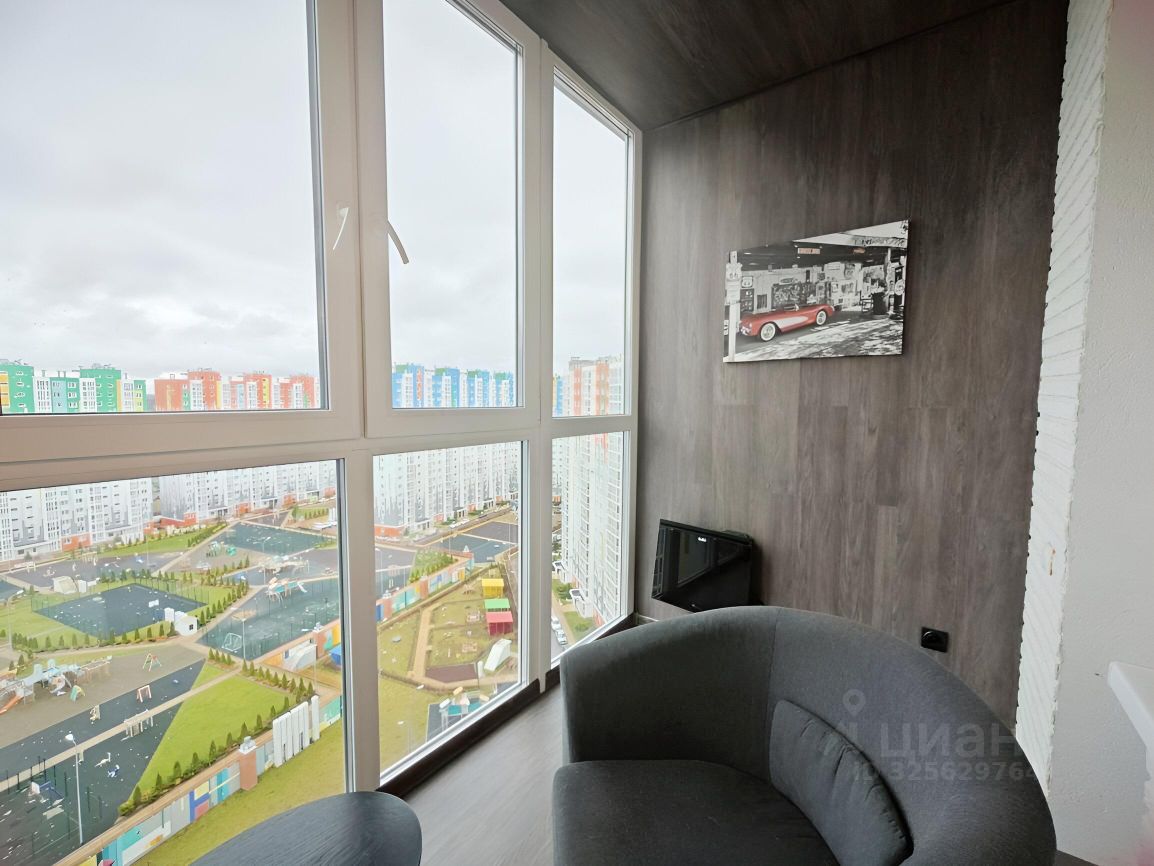 Просторная комната разделена стеной из газоблоков, что дает две полноценные комнаты. Квартира оснащена мебелью, включая шкафы, обеденную зону, удобный диван и лаундж зону на лоджии. Кухня оборудована стильной техникой и яркими фасадами, что создает атмосферу уюта и комфорта. В квартире совмещенный санузел с качественной отделкой и современной сантехникой (стиральная машина, электрический полотенцесушитель).