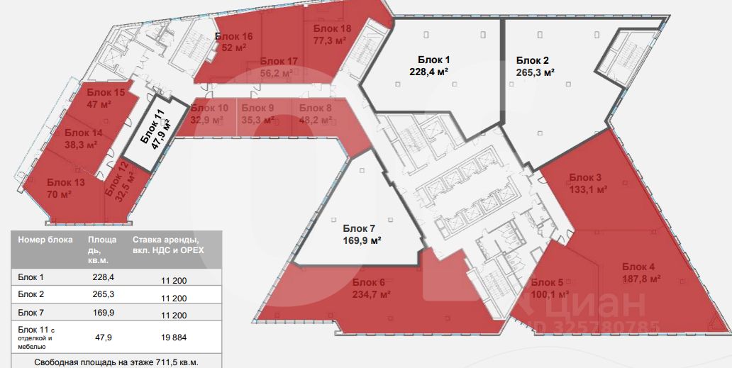 Этот лот состоит из нескольких помещений: 265 кв. м., 995 кв. м., 432 кв. м. и 995 кв. м.