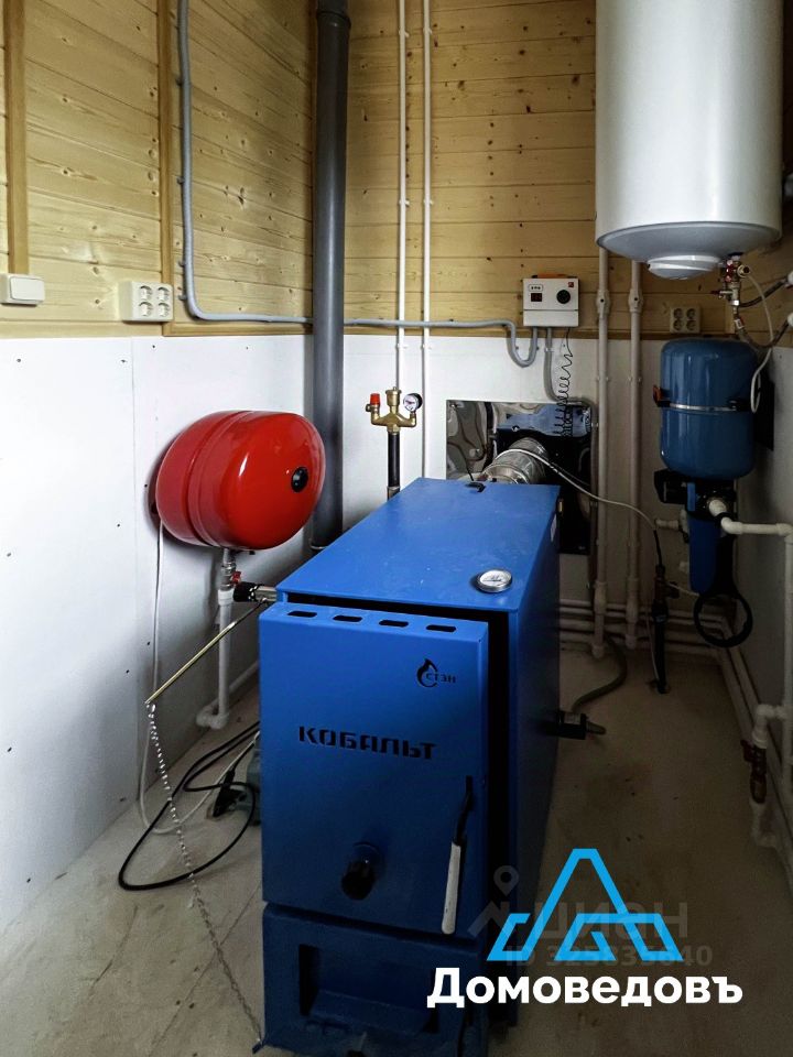 - Вода скважина на участке, водонагреватель, вода проведена в кухню и санузлы. В трех санузлах три душевые кабины, три раковины, три унитаза, три тумбы, три зеркала, смесители. - Канализация локальное очистное сооружение. - Электричество 15 кВт, свет, розетки и выключатели. - Отопление котел на твердом топливе и электричестве, радиаторы, антифриз в системе отопления.