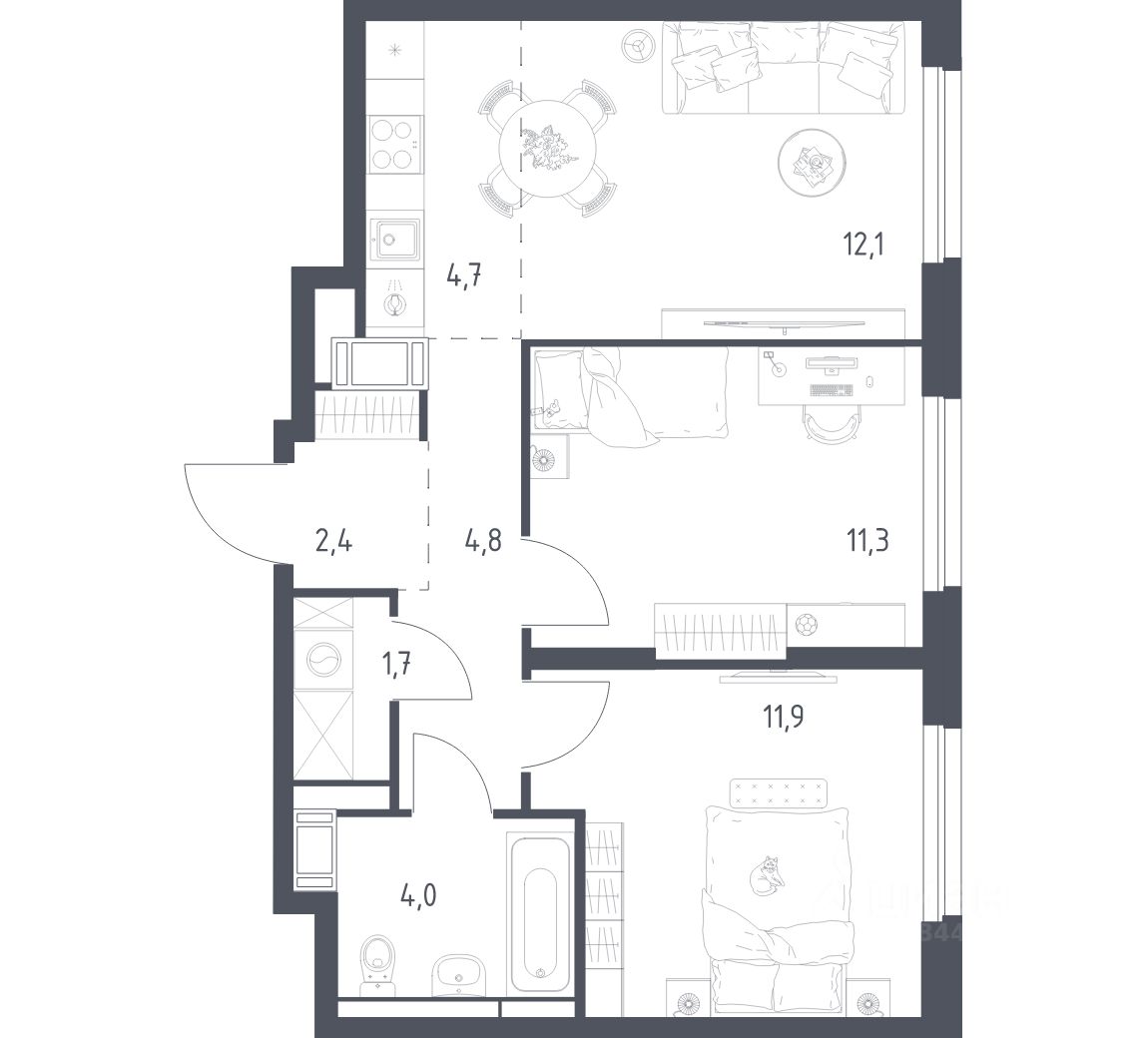 Общая площадь52,1 м2