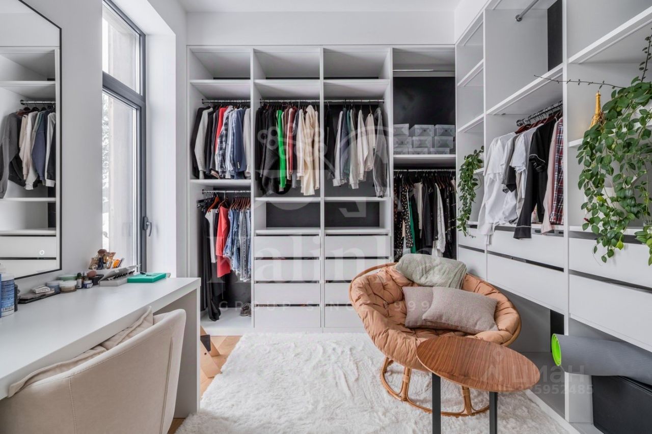 Планировка Первый этаж: холл, гардеробная, гостевой санузел, просторная гостиная-столовая с камином, кухня, кладовая, застекленная терраса. Гостевая спальня-кабинет с санузлом. СПА-зона: бассейн с выходом на участок, сауна, душевая, санузел. Блок для персонала: спальня, кухня, постирочная. Гараж на 2 автомобиля. Котельная с отдельным входом. Второй этаж: мастер-спальня с ванной комнатой и гардеробной, две гостевые спальни с санузлами и гардеробными, четыре детские спальни с санузлами.
