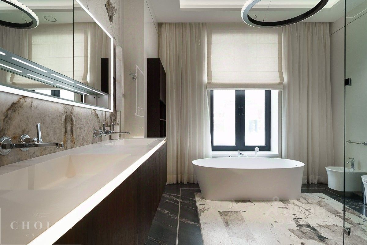 Лот 48426. Новый роскошный дом ''под ключ'' с мебелью 850 кв.м. на участке 22 сотки в коттеджном поселке ''Ромашково 21'' на Рублево-Успенском шоссе. 1 этаж: прихожая, гардеробная, санузел - 2шт., спальня с санузлом, гостиная, кухня, столовая, постирочная, гараж, котельная, бассейн, душевая - 2шт., сауна 2 этаж: холл, мастер - спальня с санузлом и гардеробной, спальня с гардеробной и санузлом - 2шт.