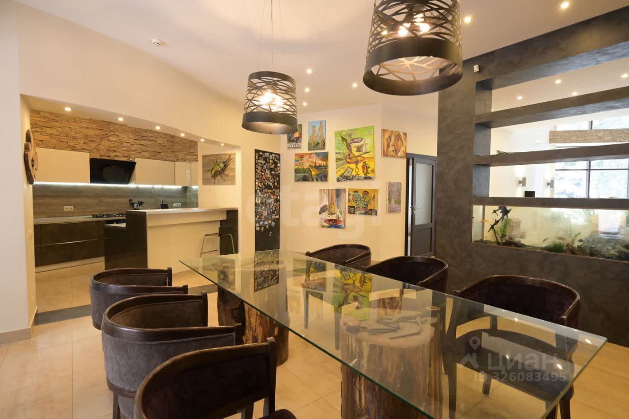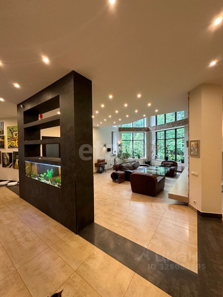 Уникальный Дом, созданный в 2013 г. В Бюро городского строительства ''Янтарь'' По подобию лучшего Проекта 2011 года в мире, под названием ''Моне'' Конструкторским решением занималась бюро ''Герасимов и партнеры'' Конструктив дома был продуман до мельчайших деталей : Несущие конструкции, сантехника, водоснабжение, электричество, слаботочка, отопление , вентиляция, все выполнено по высочайшим стандартам в тч СНИП, что отражено в отдельных проектах. Конструктив дома состоит из: Монолитного фундамента(плиты) толщиной 80 См. армированного 20мм арматурой, по периметру фундамент окружен глубинным дренажем со сливными колодцами, на фундамент установлено 6 бетонных колонн высотой 15 метров поддерживающих крышу на 42 железных двутаврах сечением 300 мм. Площадь цоколя 300 кв метров Размещение в цоколе всех технических помещений и склада позволяет полностью освободить 1 и 2 этажи от всего лишнего . Участок: 25 соток . Высажено более 100 деревьев в том числе голубые ели, корейские ели, Длинно хвойные ели, Бансаи, ивы и плодовые деревья, устроены альпийские горки с тоннами горных камней. По всему участку проложена система дренажа, система полива . На участке имеется Барбекю домик 45 кв.м. с печью (мангалом) , столешницы изготовлены из шоколадного мрамора. Кастомными столом и скамьями из дуба и предметы ручной работы. Площадь многолетнего газона 20 соток. По периметру участка расположено Краснополянское лесничество 70 соток арендовано с возможностью выкупа и проведена парковая обработка леса. Также по всему участку установлена система освещения. Канализация -автономная, не требует никакого вмешательства , на 3-х резервуарах. Дом подключен к охранной компании, с системой оповещения и сигнальными датчиками на все комнаты двери и окна. Дом: Крыша. Площадь крыши 600 кв.м. с полимер-песчаной черепицей. Стропила, двойные -выдерживают любые снеговые нагрузки . На смом большом витражном окне (площадь 90кв.м) устроено из теплого алюминиевого профиля (как в торговых центрах) и теплозащитными стеклами По всему дому проложен теплый пол. Стены дома выстроены из теплоэффетивного красного кирпича увеличенного размера 1.5 Толщина стен 80 см. что позволяет избавится от лишних трат зимой и кондиционеров летом, в доме всегда нормальная температура.