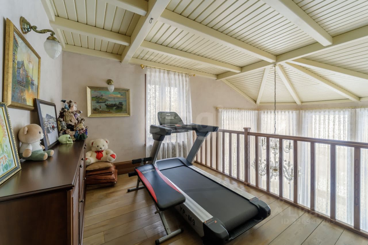 На 2 этаже располагаются: Просторный коридор, два совмещенных санузла, 4 изолированные меблированные спальни, гардеробная, а также зона для занятия спортом.