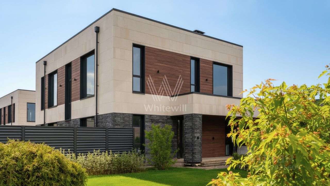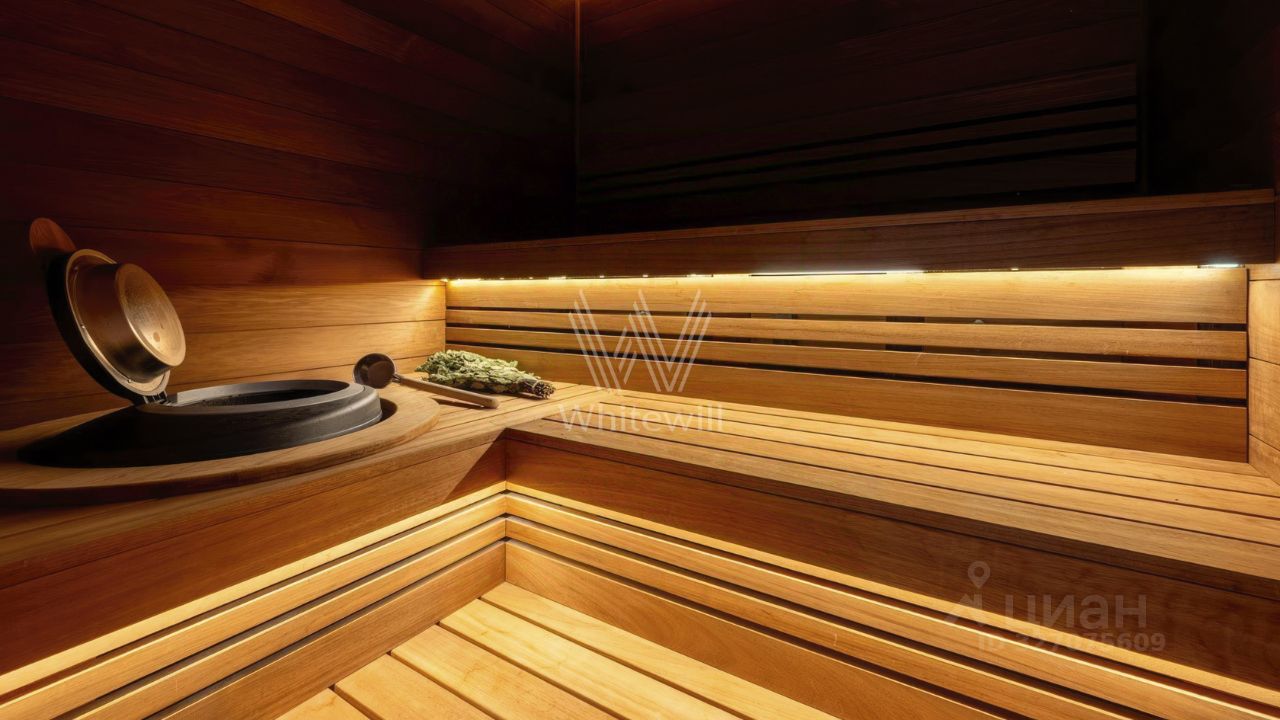 Планировка включает просторную гостиную, объединённую с кухней-столовой с удобным островом, сауну из африканского дуба и термоосины с финской печью Helo Rondo 960, 4 уютные спальни, кабинет и вместительные гардеробные. Террасы общей площадью 97 м² станут излюбленными местами для отдыха на свежем воздухе. Оставить машины можно во встроенном двухместном гараже. Территория полностью огорожена и ухожена — здесь вас будет радовать аккуратный газон, обеспечивающий приятный вид из окна и гармонию с природой.