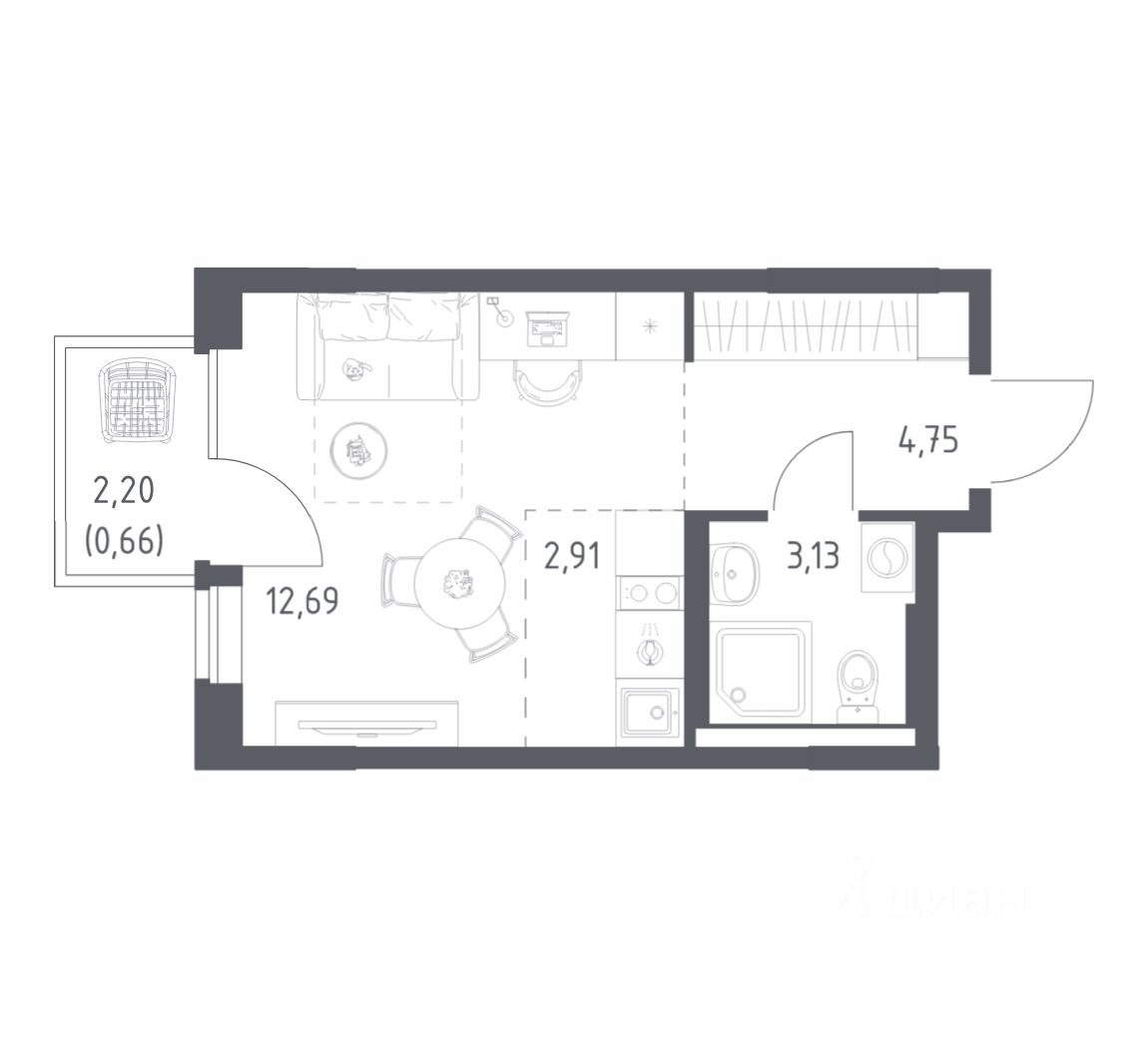 Строим кварталы для жизни с заботой о будущем. Предлагается студия комфорт-класса площадью 24,14 кв.м в корпусе 7 на 7-м этаже, в жилом комплексе ''Квартал Авиаторов''.
