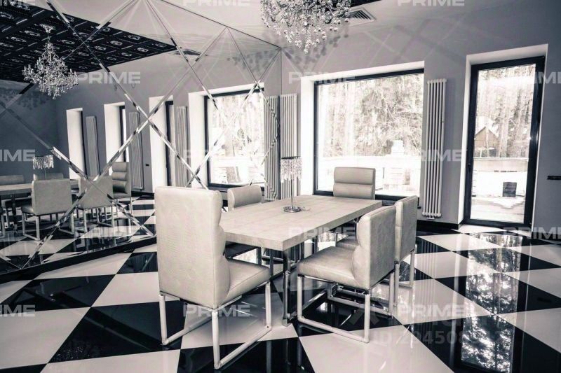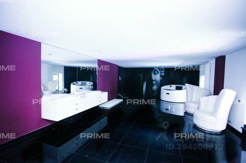 Интересный с точки зрения архитектурного решения просторный, современный дом, с многоуровневой крышей, террасами, панорамными окнами. Просторные, светлые интерьеры выполнены в стиле Арт-деко. Красивый камин, дорогая, удобная мебель, эксклюзивные элементы декора, великолепно выполненные светильники, просторный SPA- комплекс, занимающий весь этаж, наличие в доме лифта - все подчеркивает высокий статус владельца.